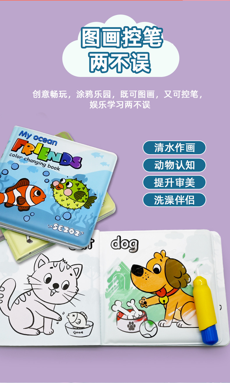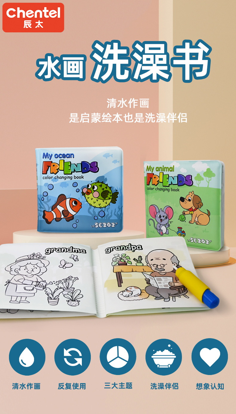 Chen Tai 놀라운 수채화 색상 변경 목욕 책 0-4 세 아기 목욕 장난감 눈물 방수 천 책스토어 가기