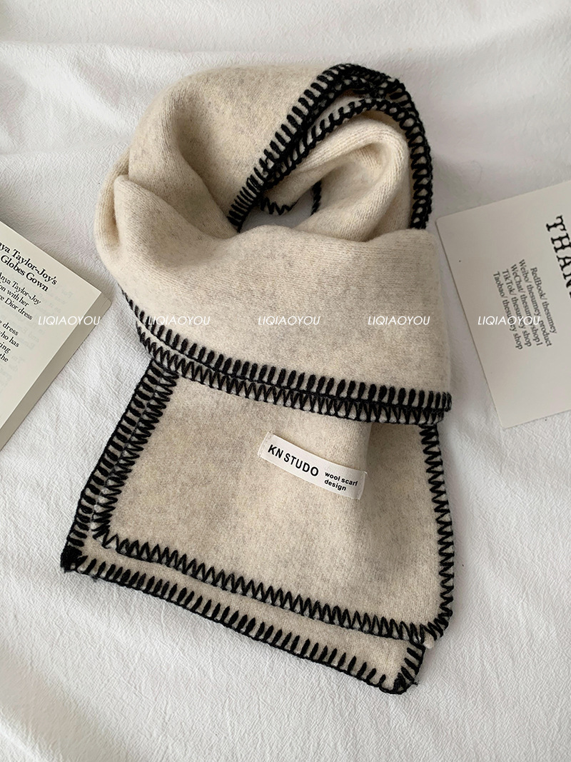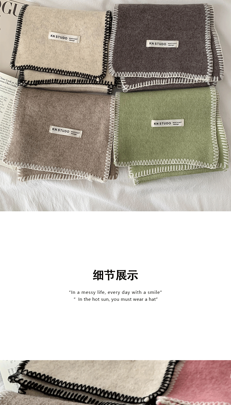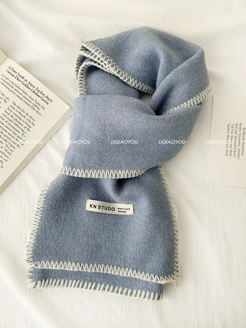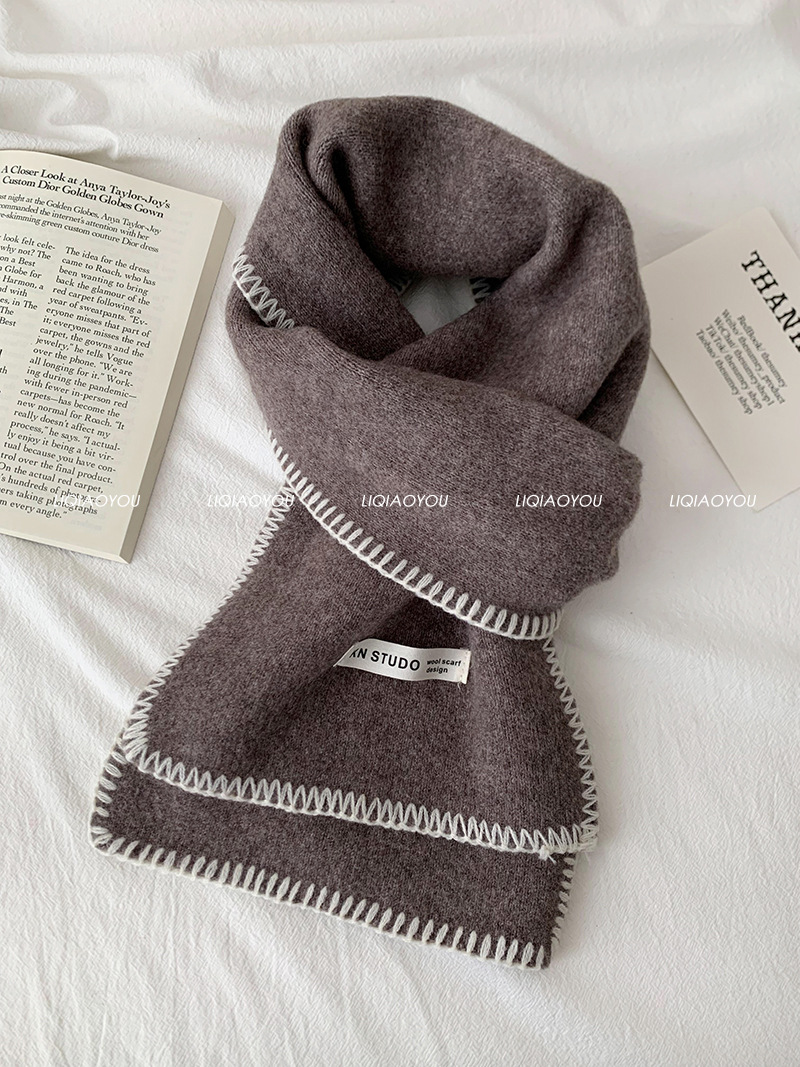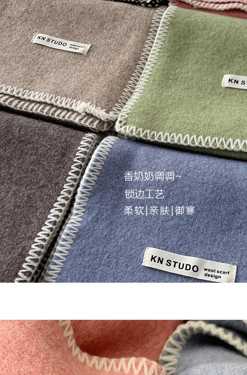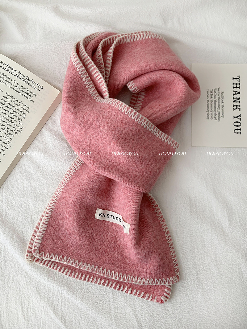 2023新款小香风纯色围巾女简约ins风针织锁边秋冬季百搭保暖围脖