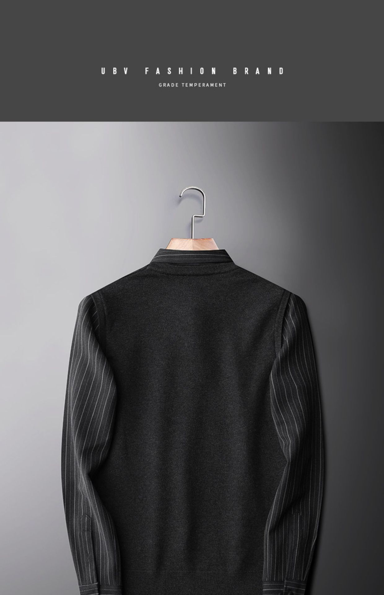 2023 가을과 겨울 자수 셔츠 칼라 스웨터 남자의 가짜 투피스 기모 두꺼운 캐주얼 스트라이프 셔츠 가짜 칼라스토어 가기