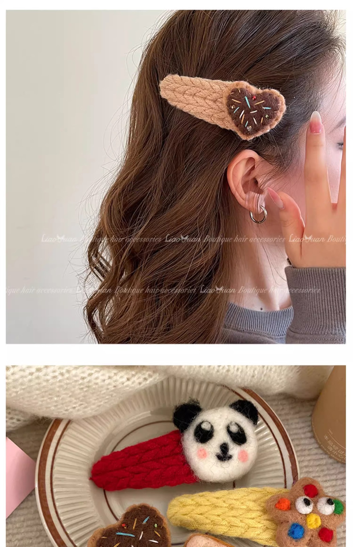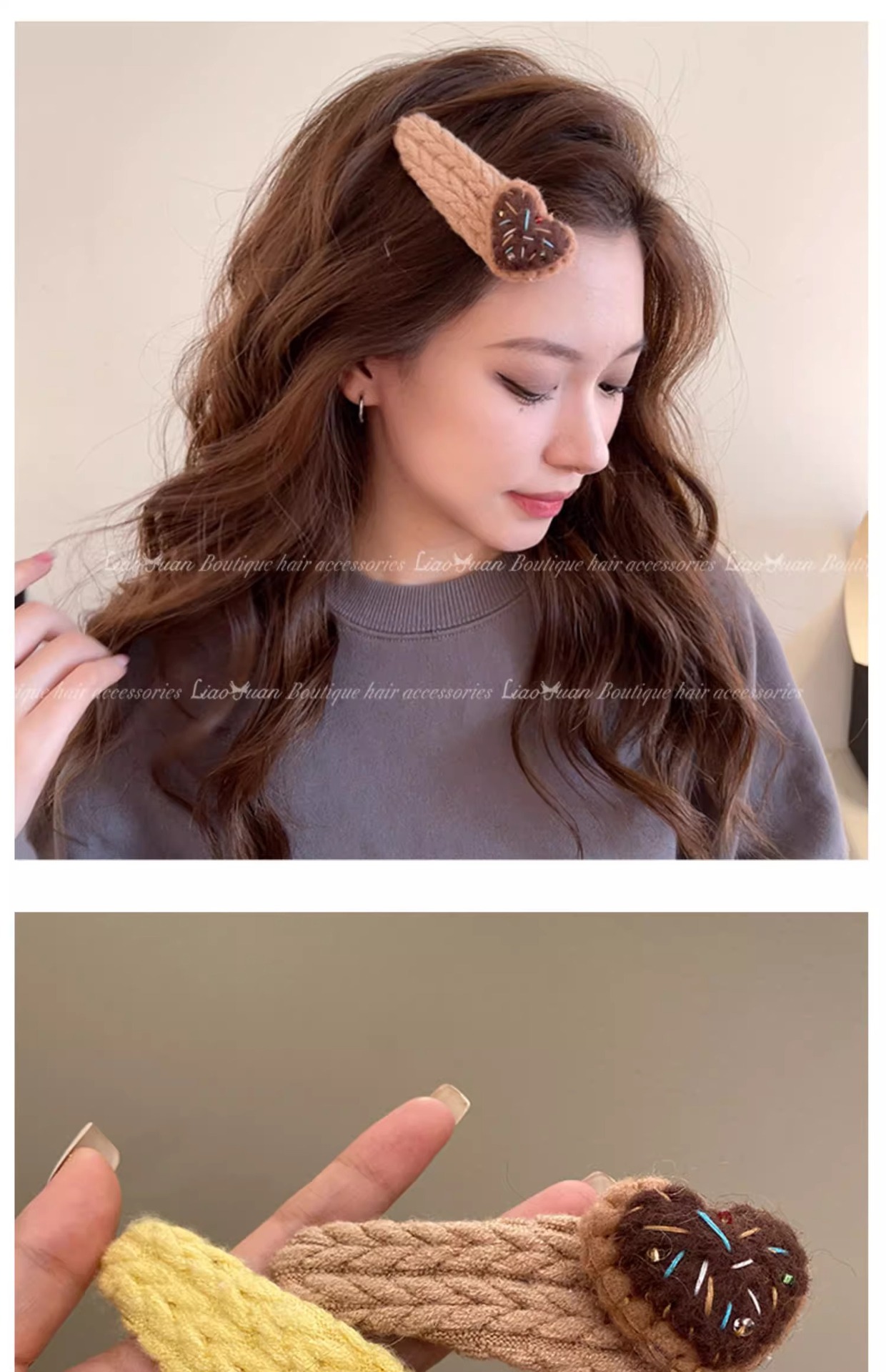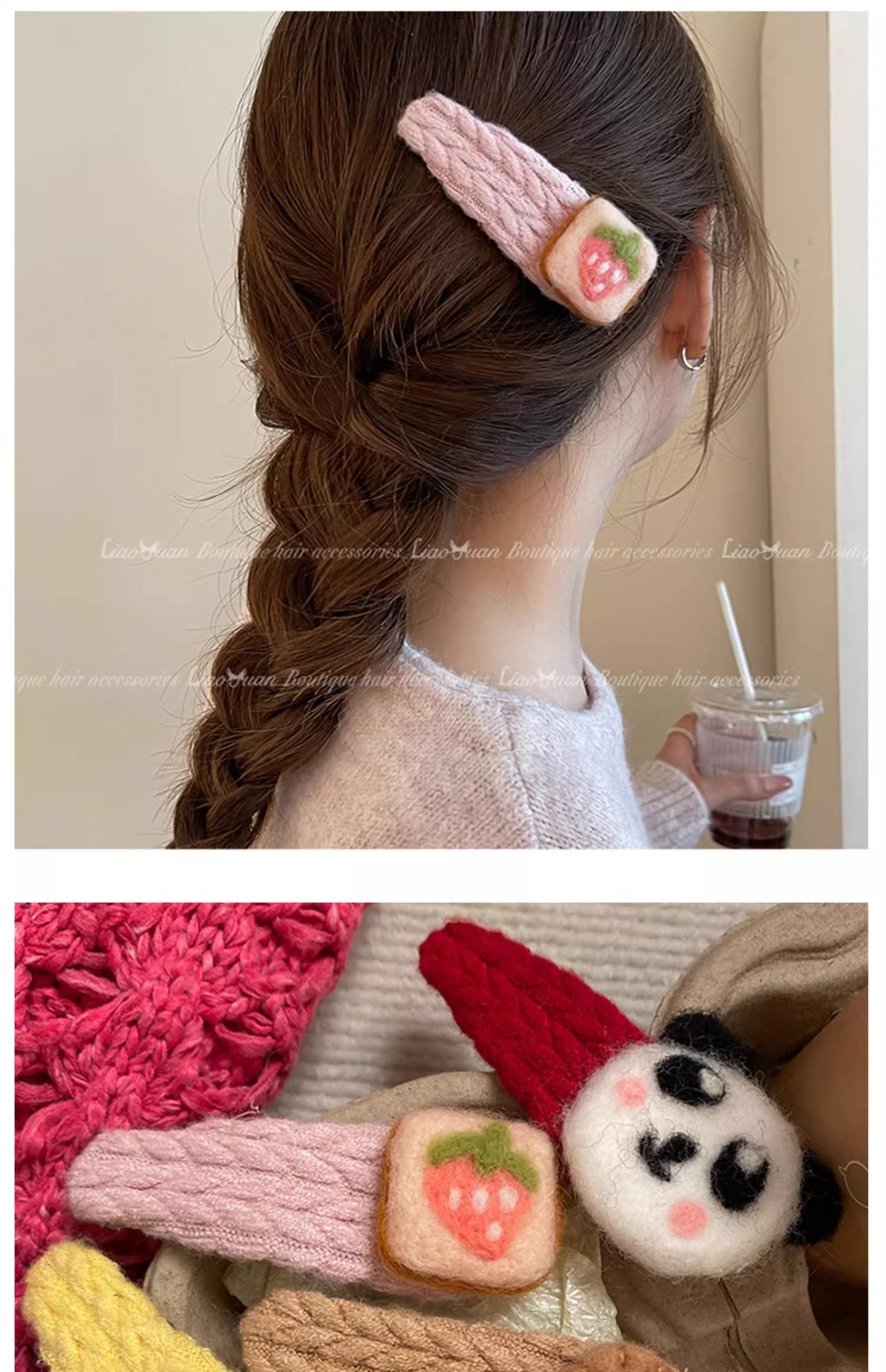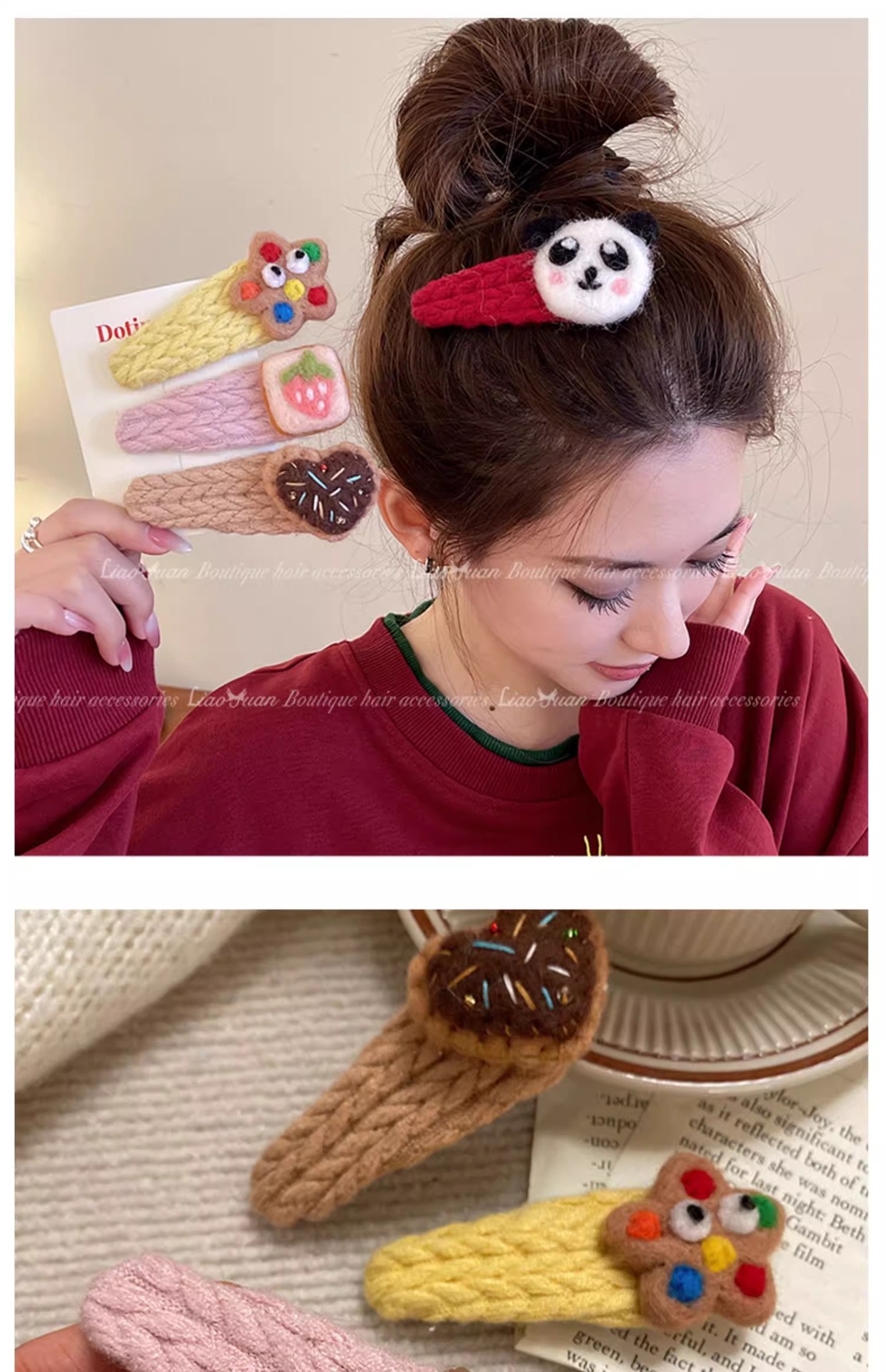 달콤한 ~ 귀여운 울 헤어 클립 모자 간단한 깨진 헤어 클립 가을과 겨울 앞머리 클립 여성용 전면 클립