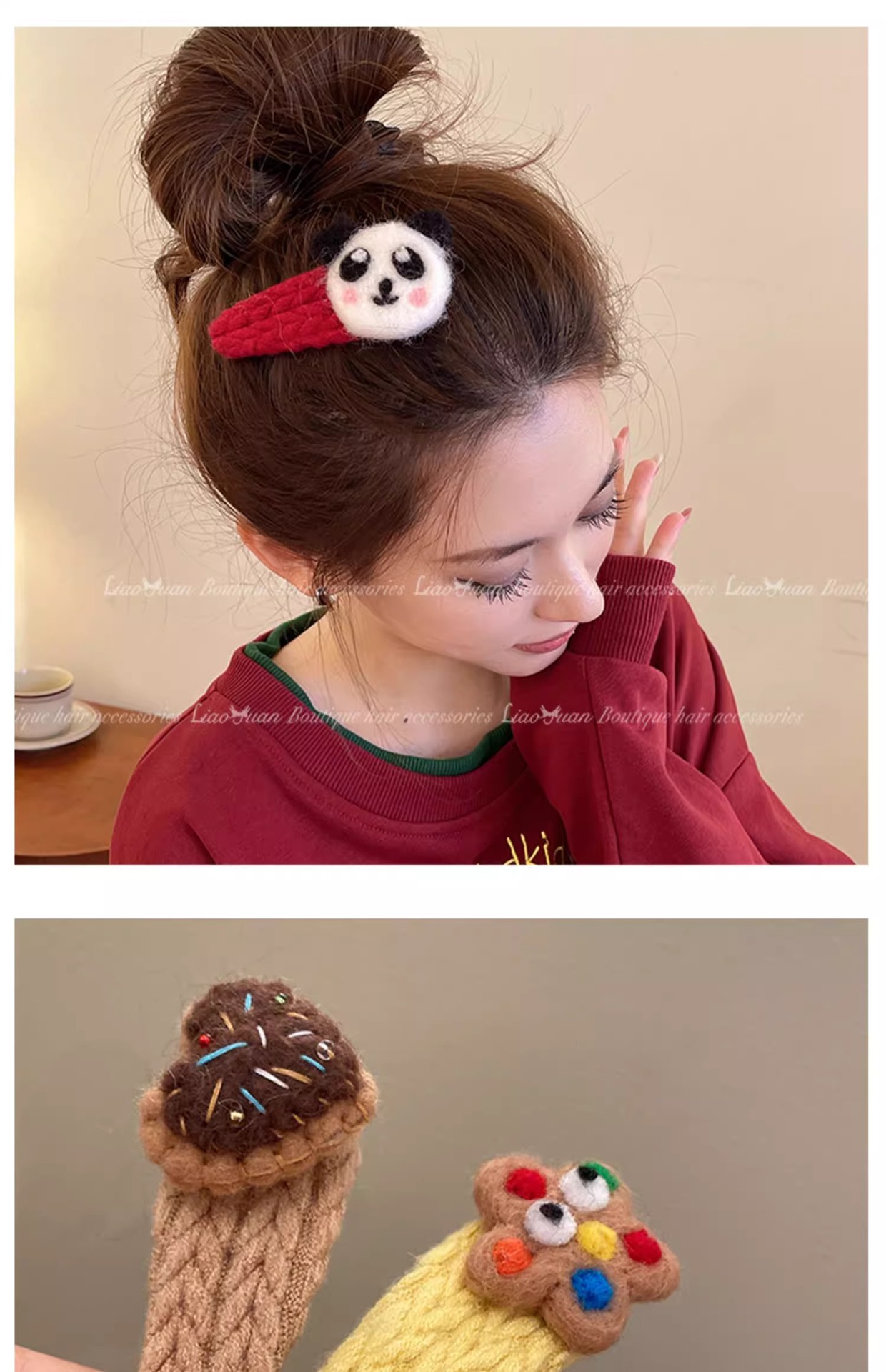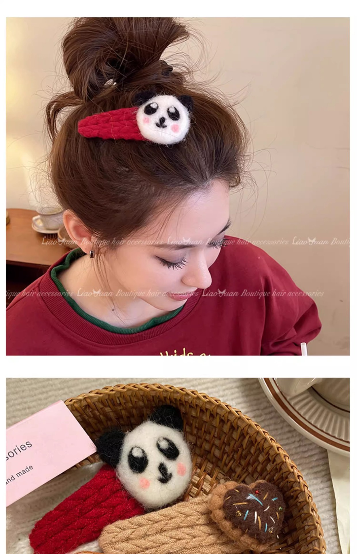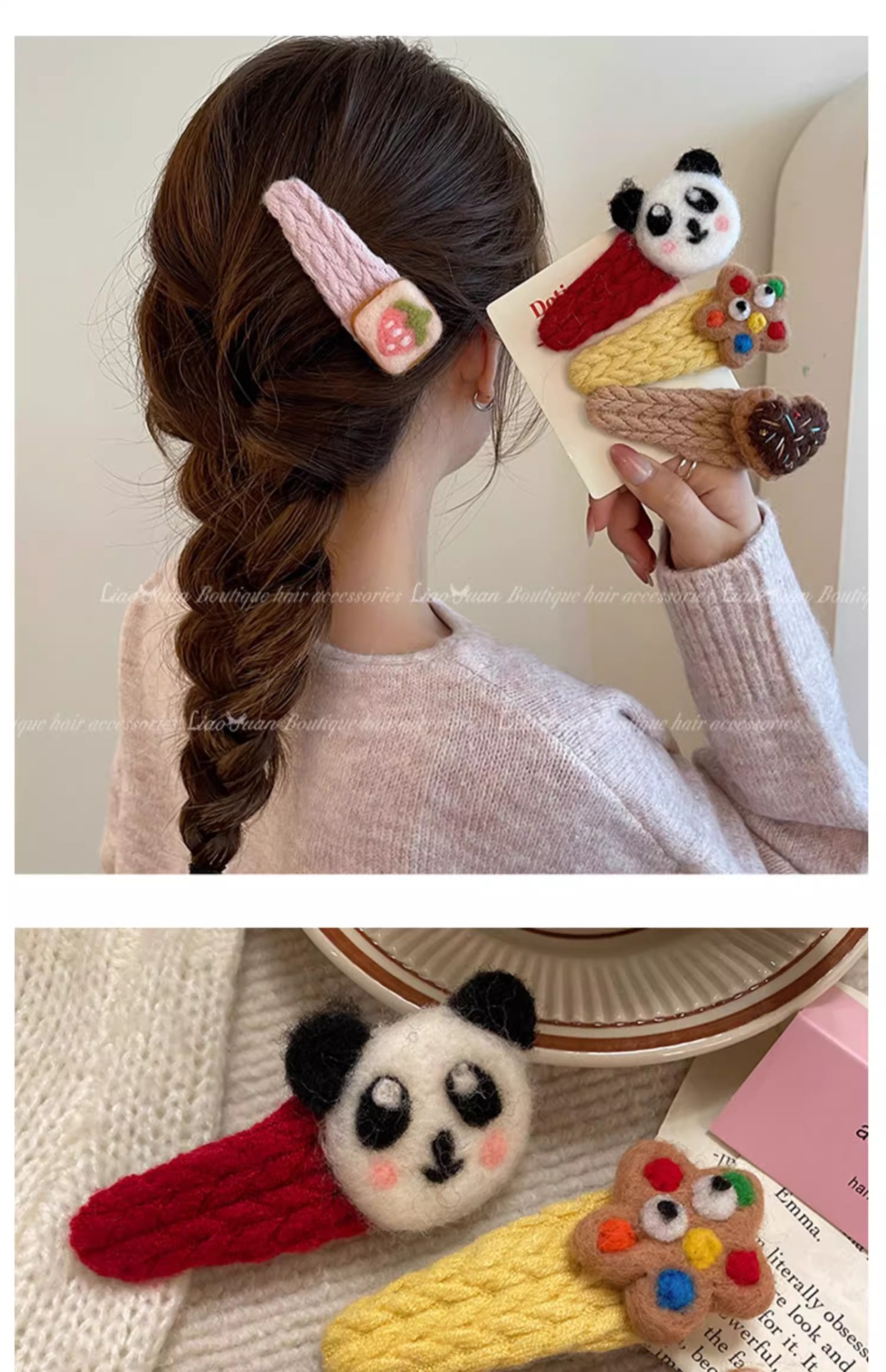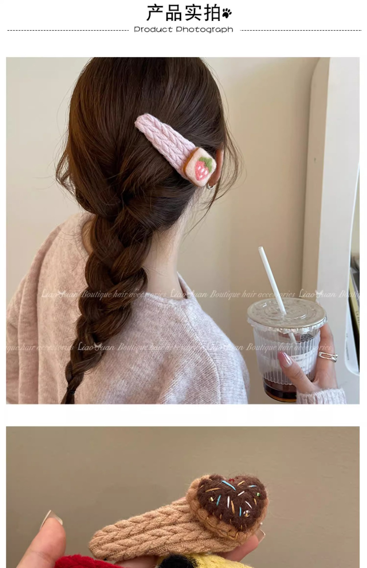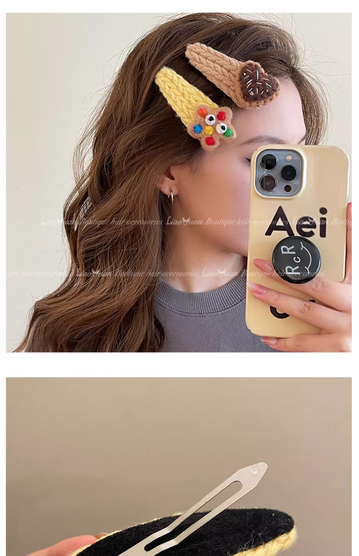 달콤한 ~ 귀여운 울 헤어 클립 모자 간단한 깨진 헤어 클립 가을과 겨울 앞머리 클립 여성용 전면 클립
