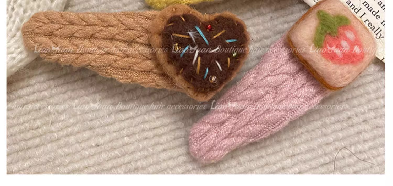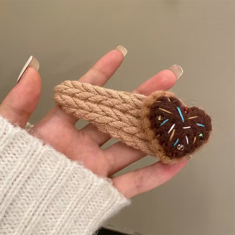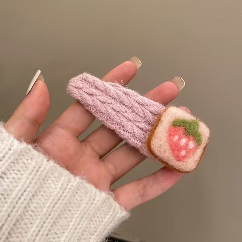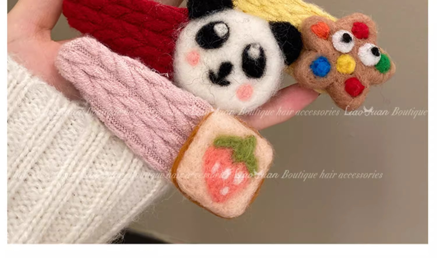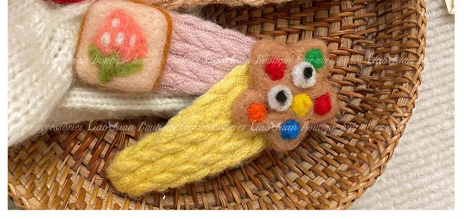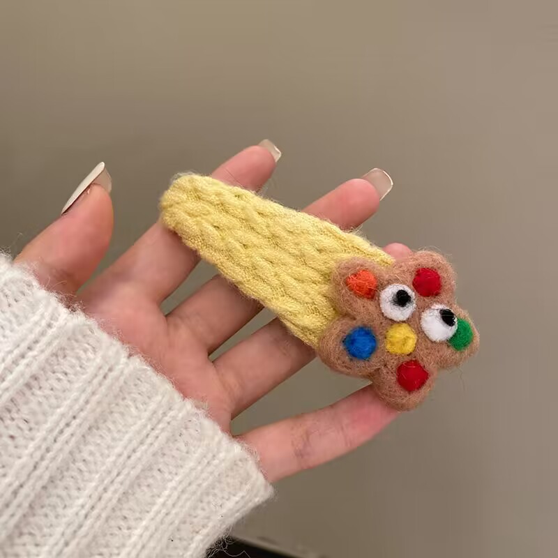 달콤한 ~ 귀여운 울 헤어 클립 모자 간단한 깨진 헤어 클립 가을과 겨울 앞머리 클립 여성용 전면 클립