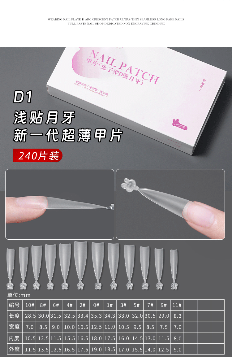 네일 네일 피스 초박형 이음매없는 하프 스틱 풀 스틱 젖빛 네일 D-아크 얕은 스틱 비 조각 및 연삭 가짜 네일 패치