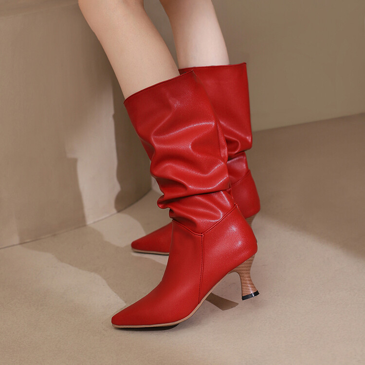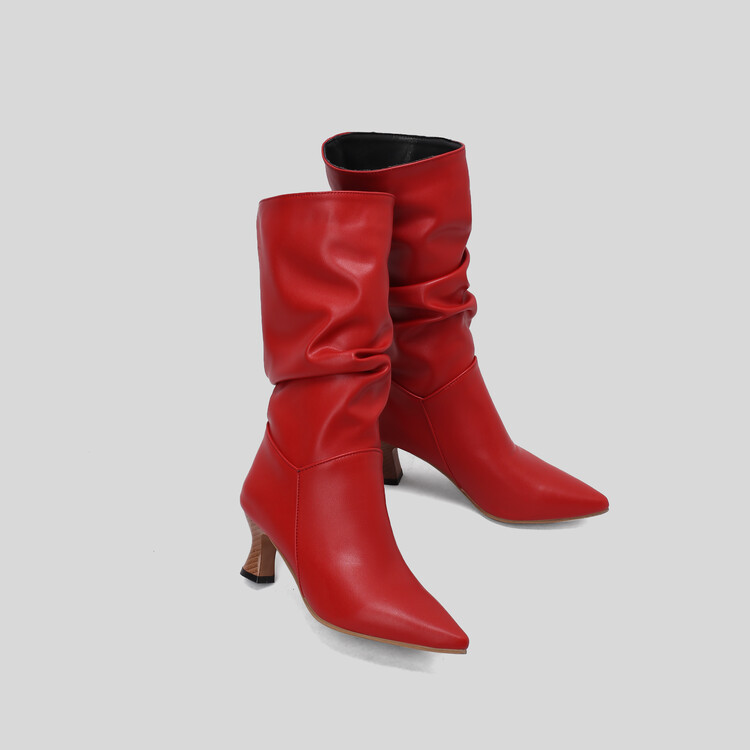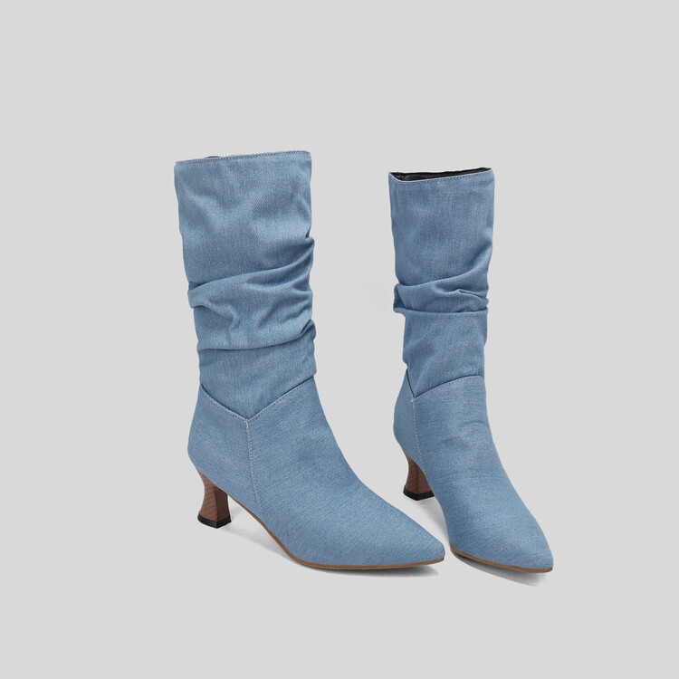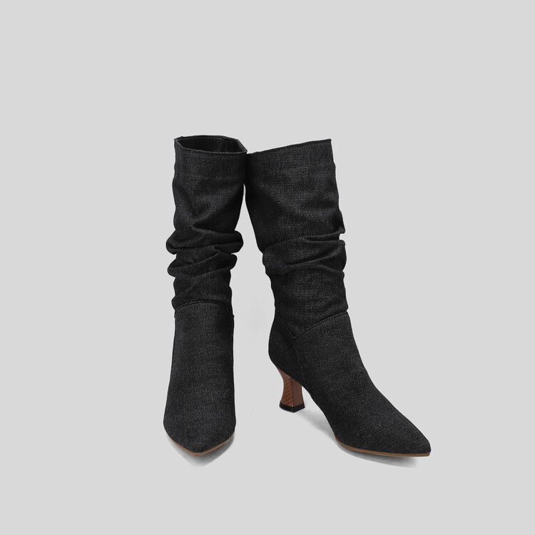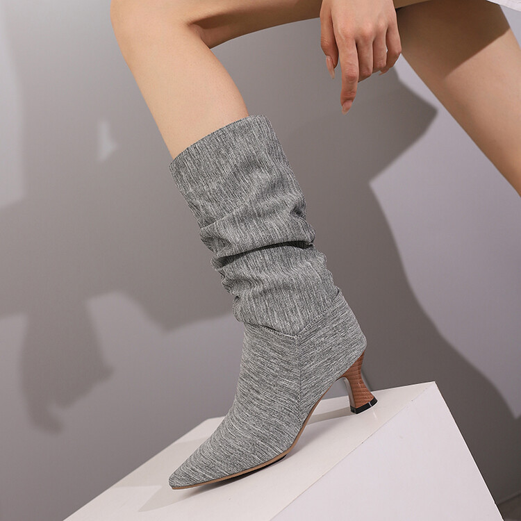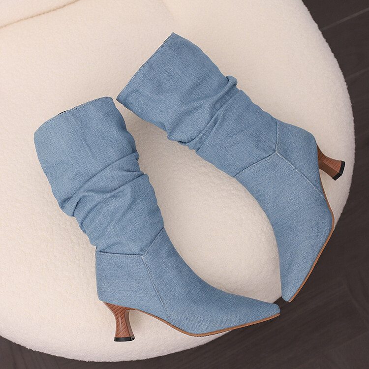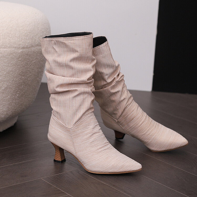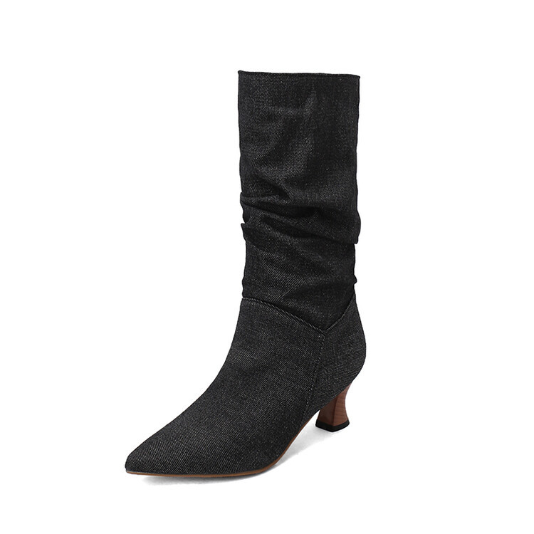 대외 무역 뾰족한 미드 힐 플러스 사이즈 대외 무역 여성 부츠 가을과 겨울 새로운 미드 배럴 부츠스토어 가기