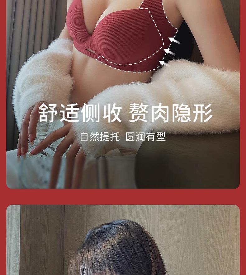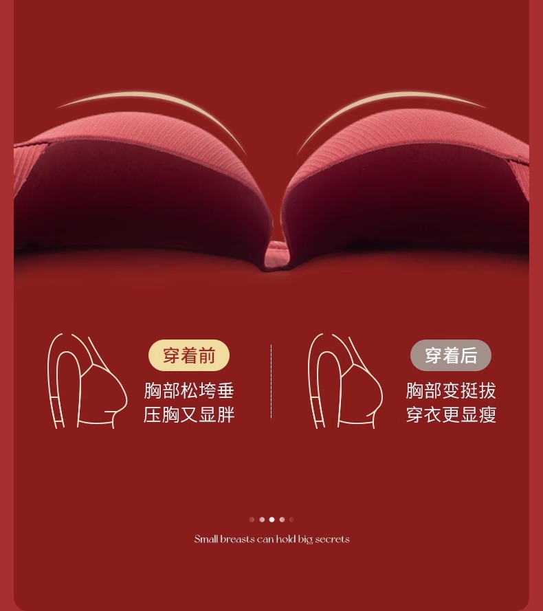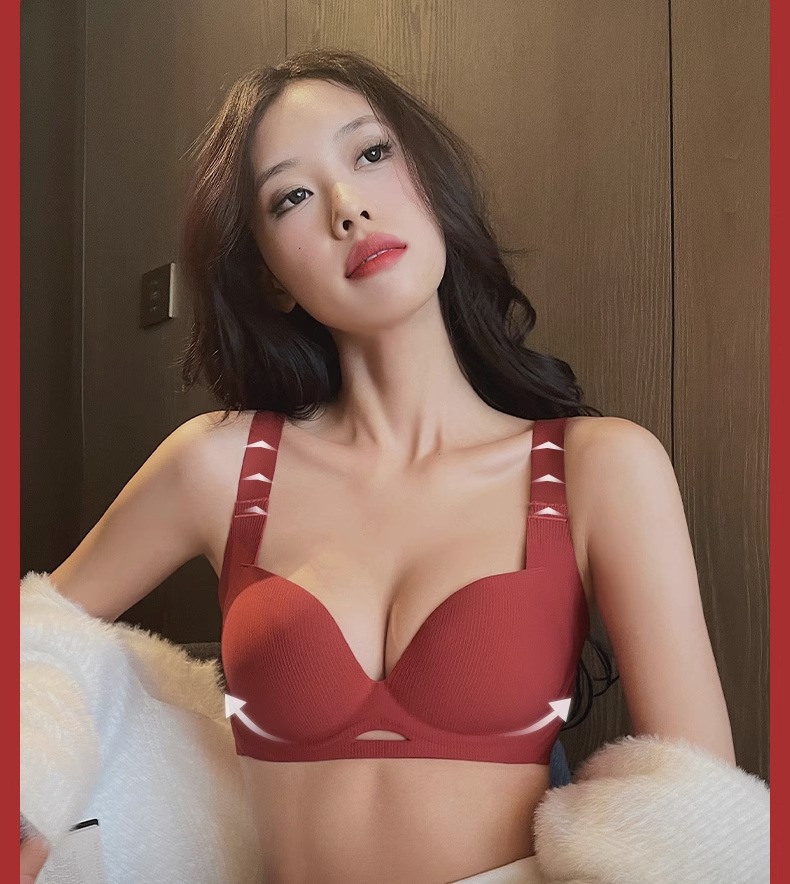 빨간 Benningnian 속옷 여성의 큰 가슴 표시 작은 상단 브래킷 안티 처짐 조절 가능한 추적 무테 여성 브래지어