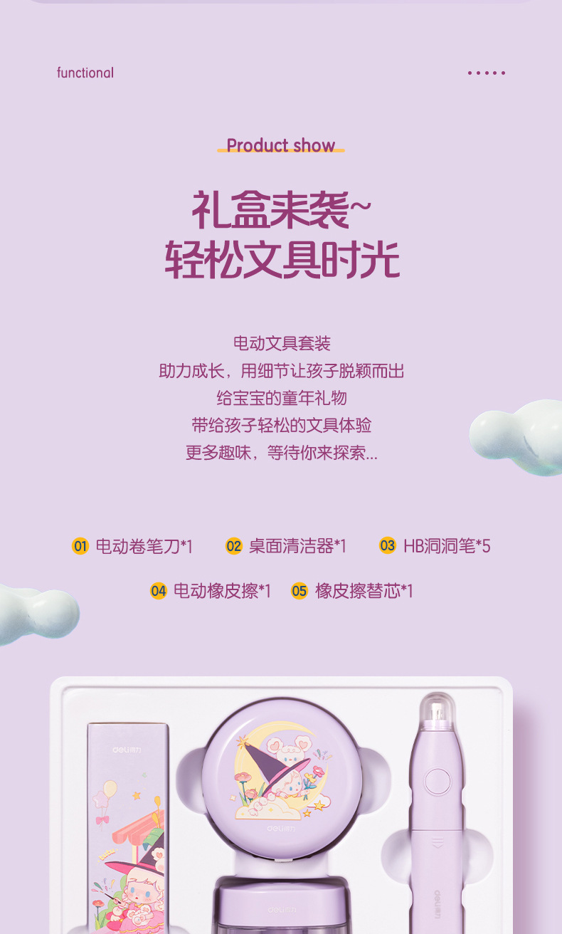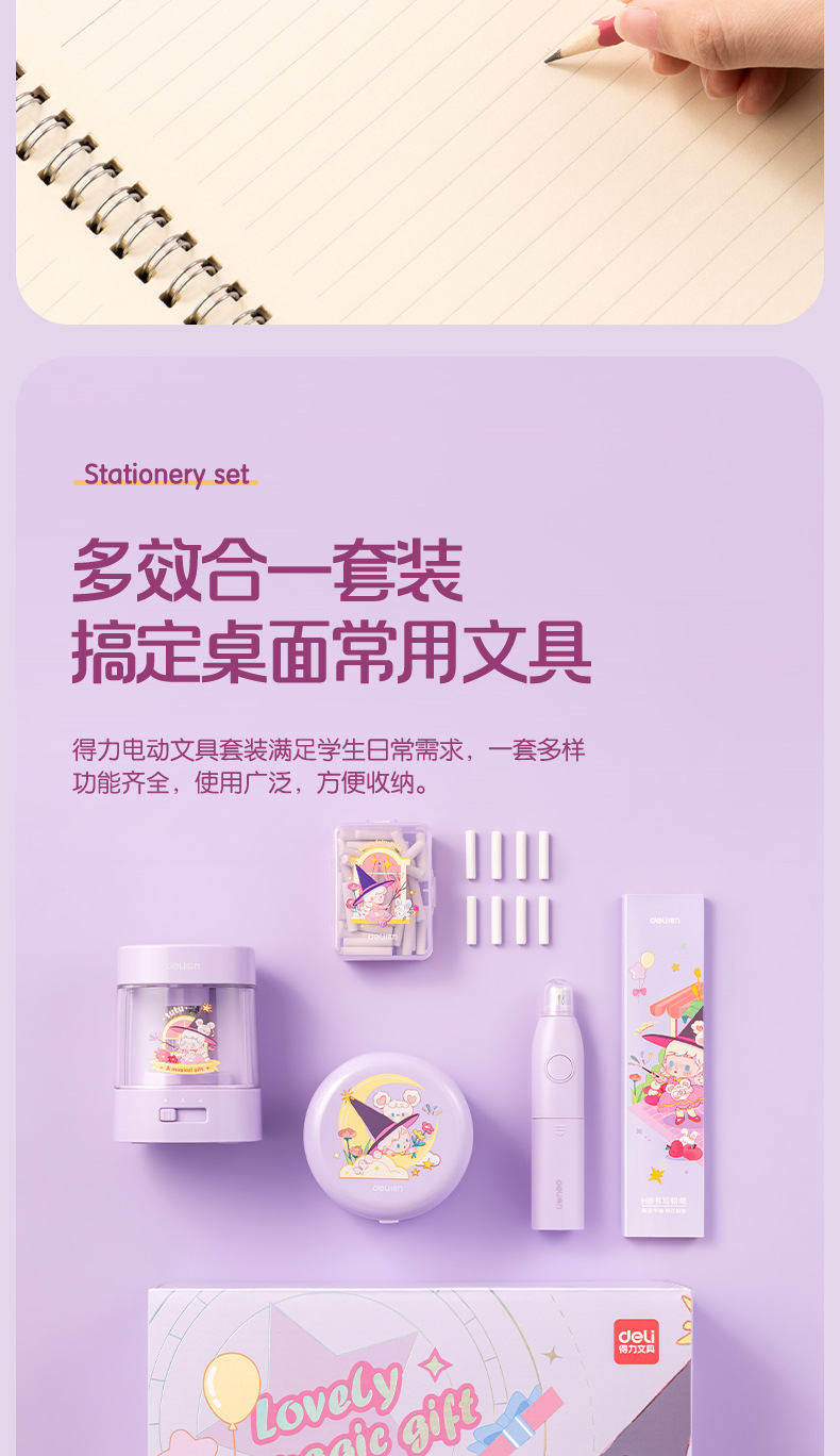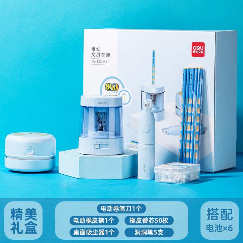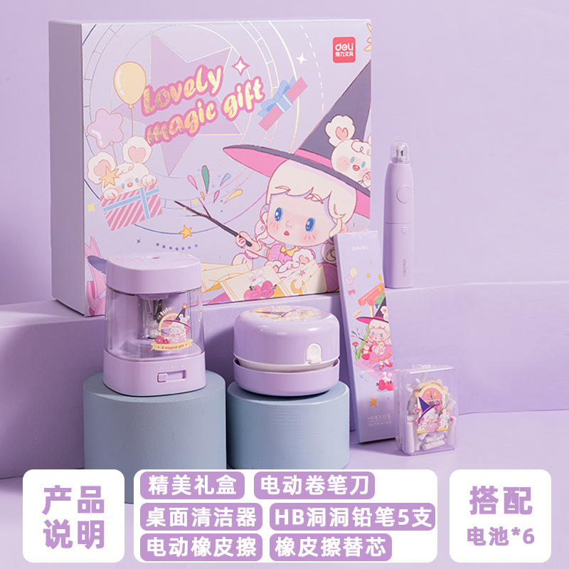 델리 33303B 전기 문구 세트 초등 학생 학용품 오프닝 시즌 할로윈 생일 서프라이즈 선물스토어 가기