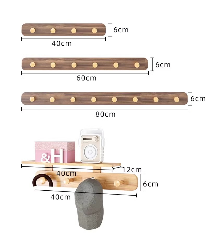 • 업그레이드-호두 색-6 후크-40cm 선반