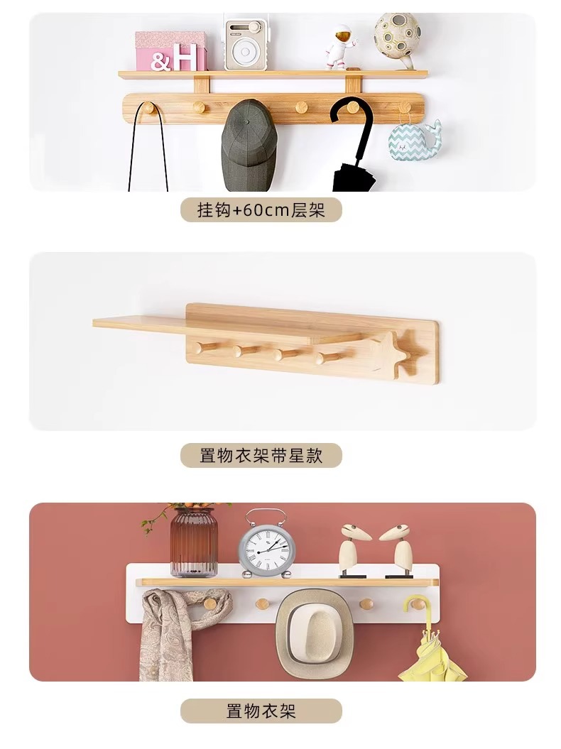 • 업그레이드-로그 색상-6 후크-60cm 선반