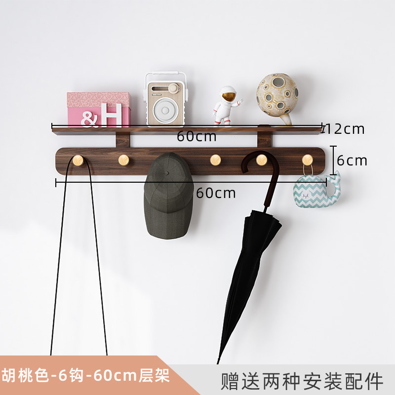 • 업그레이드-호두 색-6 후크-60cm 선반