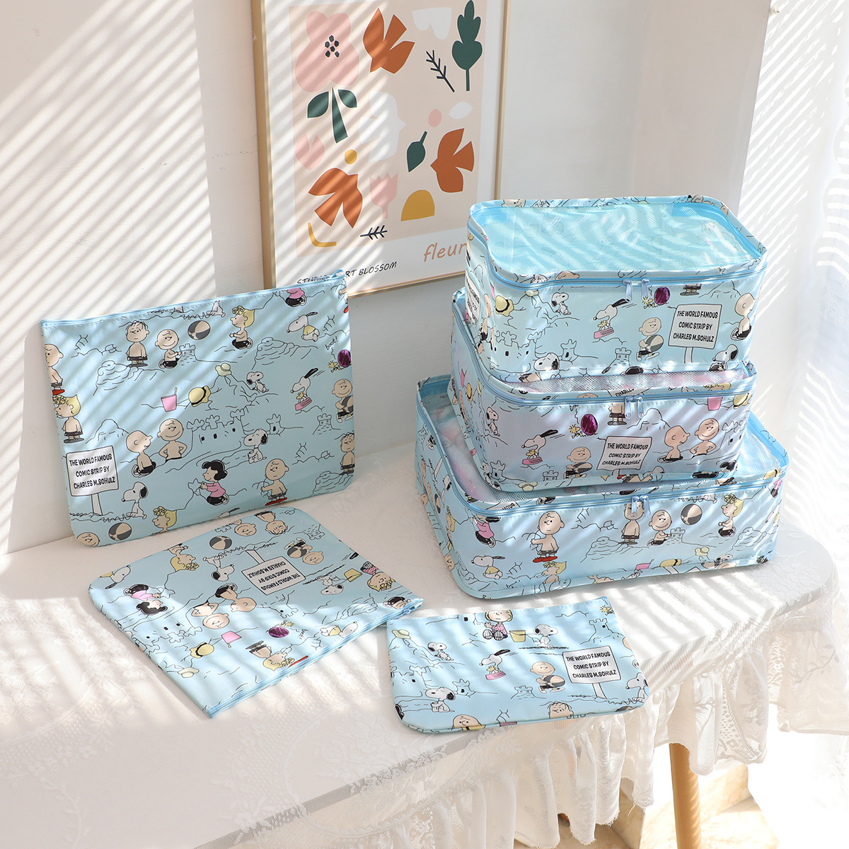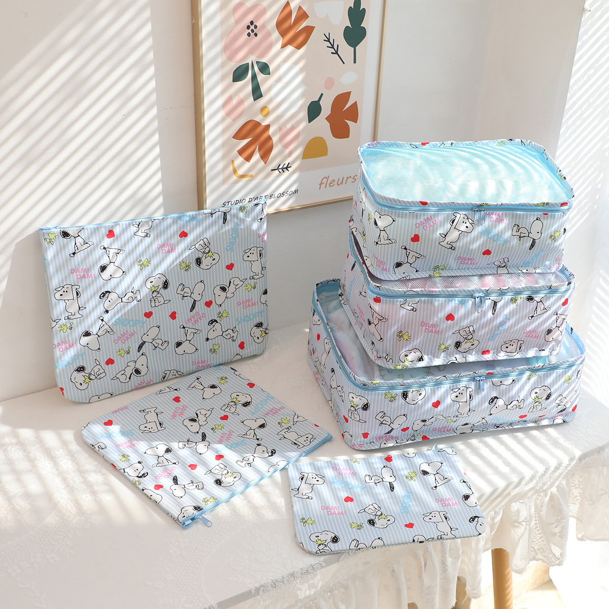 새로운 만화 Kulomi 흰 개 방수 여행 보관 6 조각 세트 여행 보관 세트 분류 가방