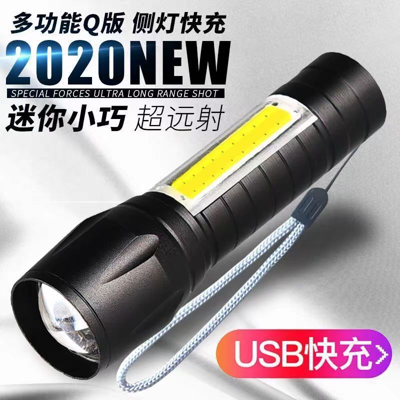 국경 간 LED 소형 손전등 USB 충전식 알루미늄 합금 휴대용 강한 빛 가정용 장거리 야외 미니 손전등