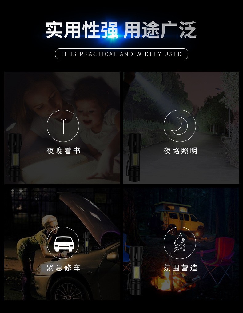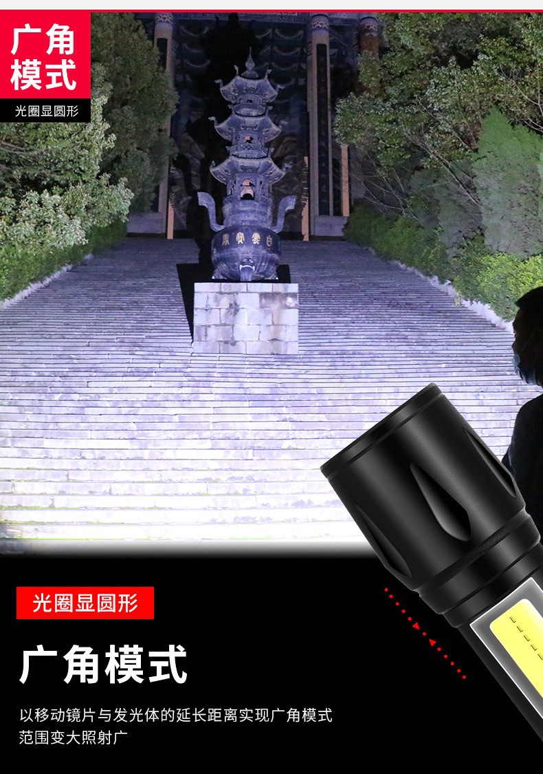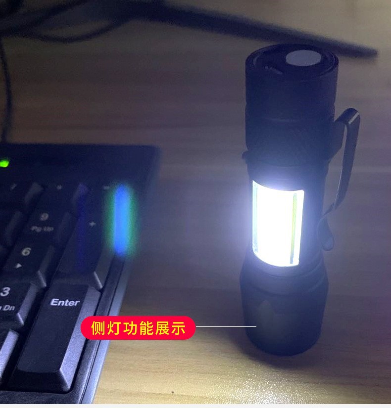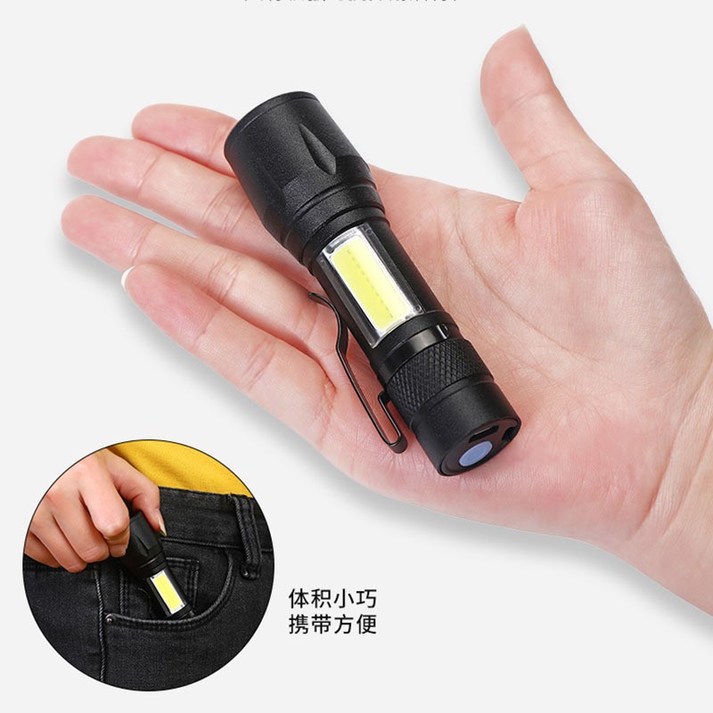 국경 간 LED 소형 손전등 USB 충전식 알루미늄 합금 휴대용 강한 빛 가정용 장거리 야외 미니 손전등스토어 가기