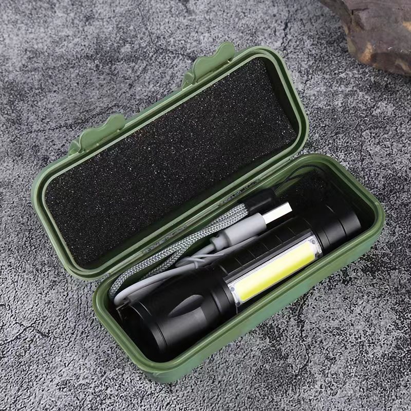 • 511 테일 로프 알루미늄 합금 손전등 + USB + 녹색 플라스틱 선물 상자