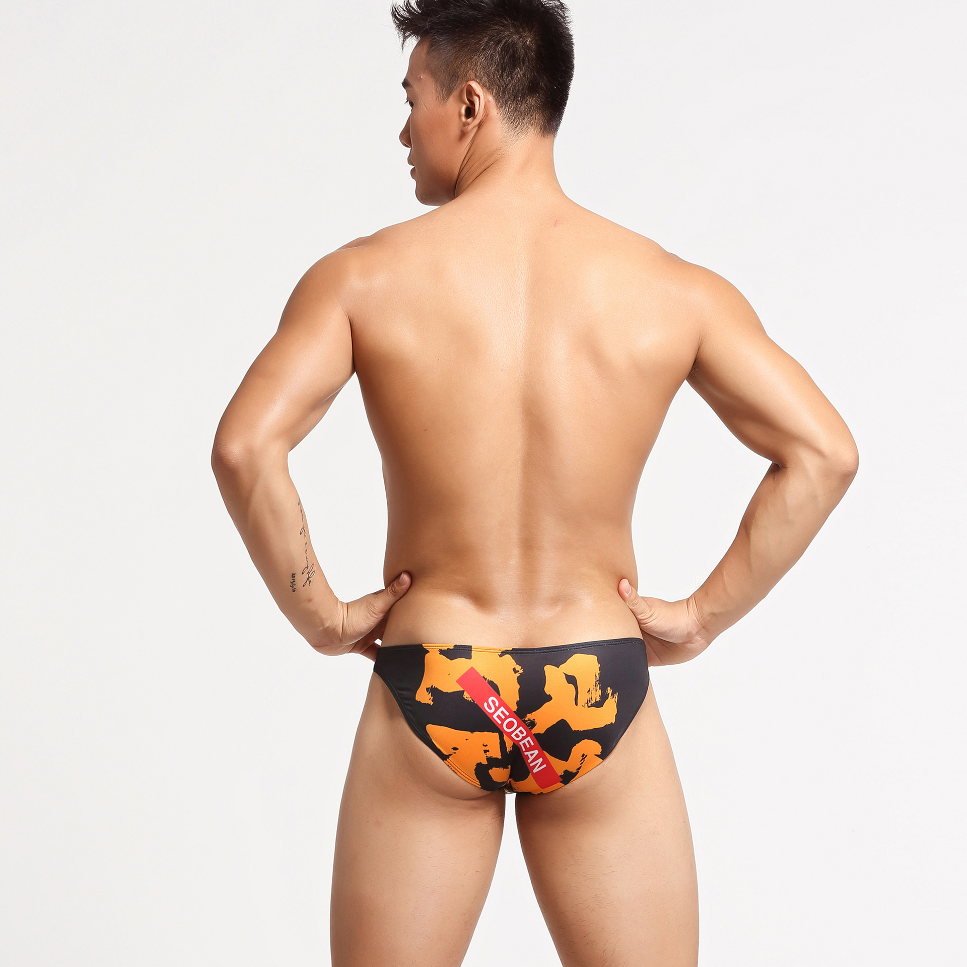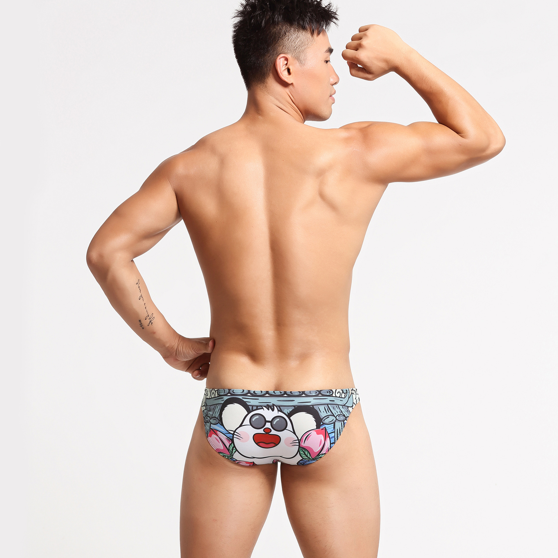 남자의 섹시한 낮은 허리 속옷 남자의 새로운 인쇄 비키니 끈 수영 바지 트렌디 한 편지 유혹 팬티 남자