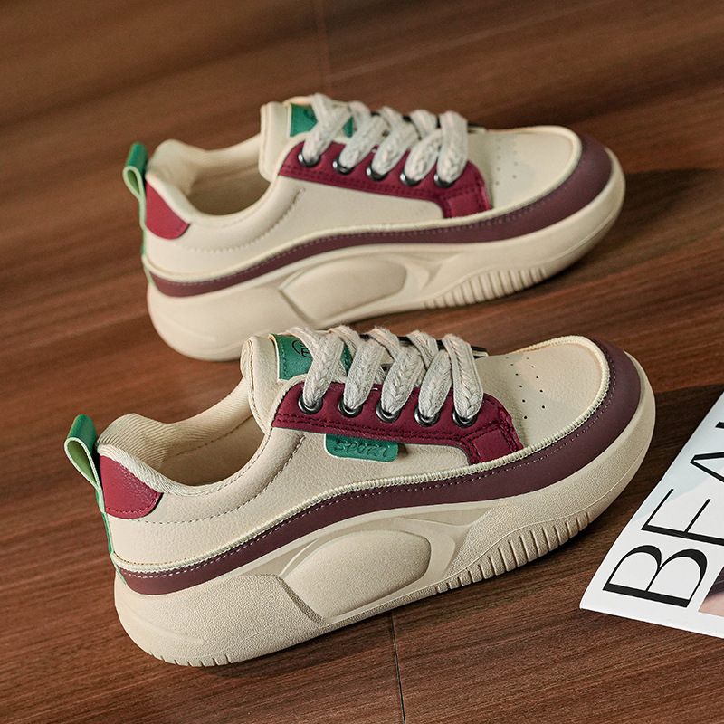 가을 2023 새로운 도착 락킹 신발 여성용 두꺼운 밑창 색상 매칭 레트로 좋은 싱글 레이어 신발 경량 여성용 캐주얼 화이트 신발