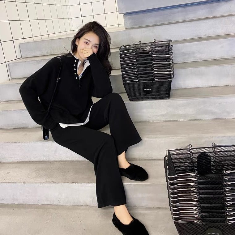 2023 이른 가을 새로운 여성의 우아한 여신 스타일 패션 캐주얼 스포츠 와이드 레그 팬츠 투피스 세트 가을스토어 가기