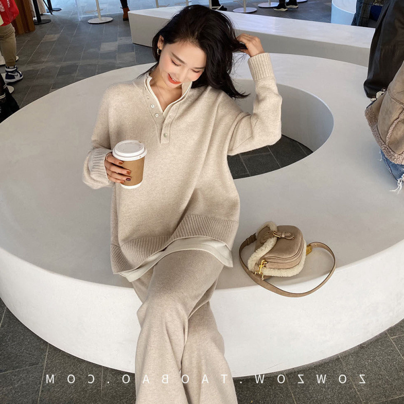 2023 이른 가을 새로운 여성의 우아한 여신 스타일 패션 캐주얼 스포츠 와이드 레그 팬츠 투피스 세트 가을