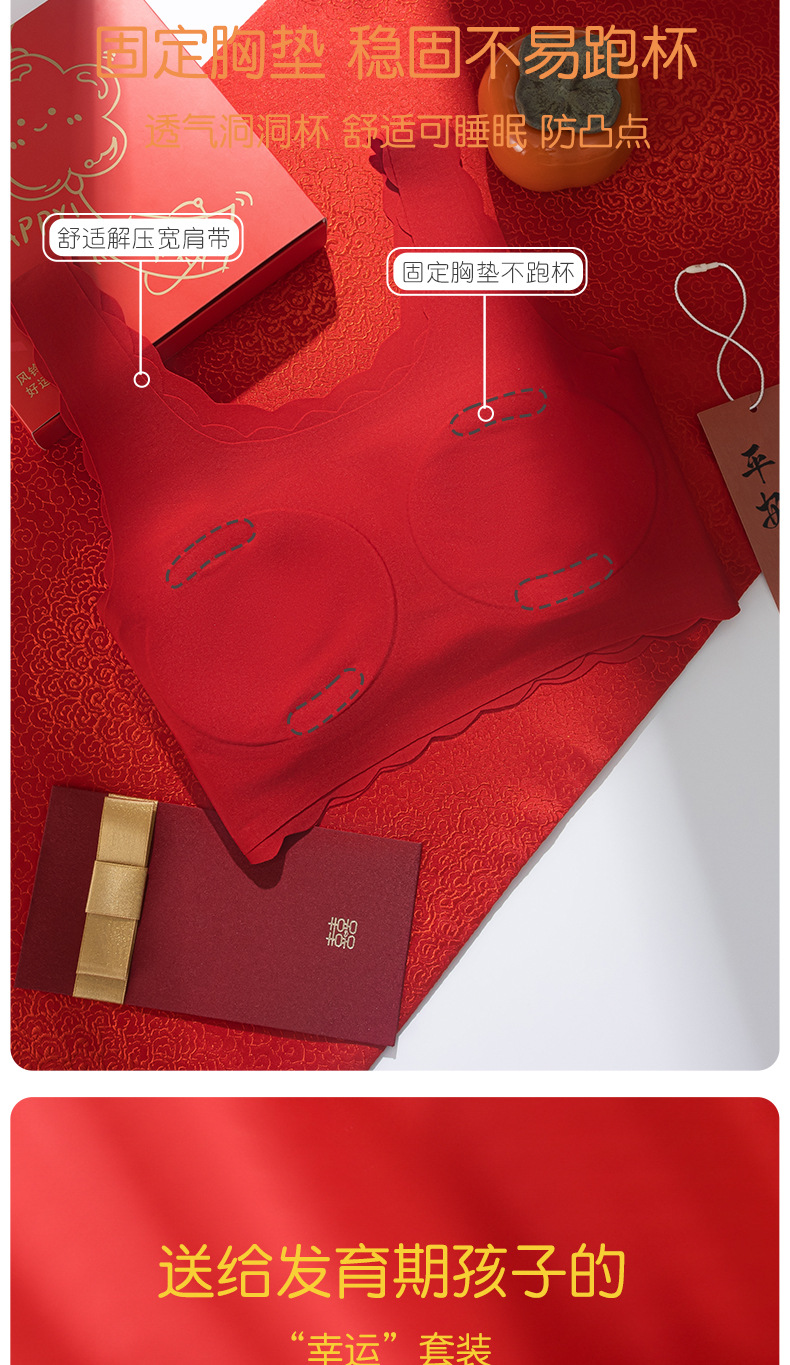 용의 해 소녀 속옷 원활한 용의 해 소녀 브라 세트 발달 초기 고등학생 조끼 빅 레드