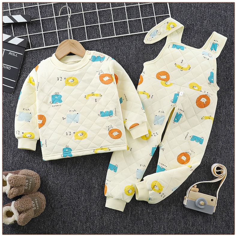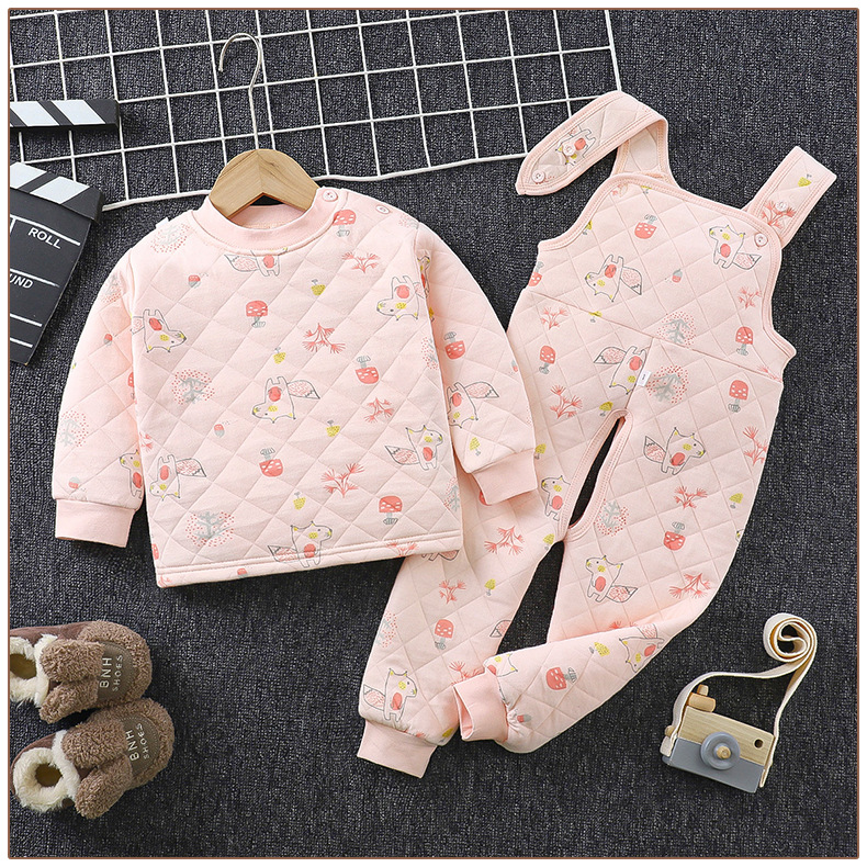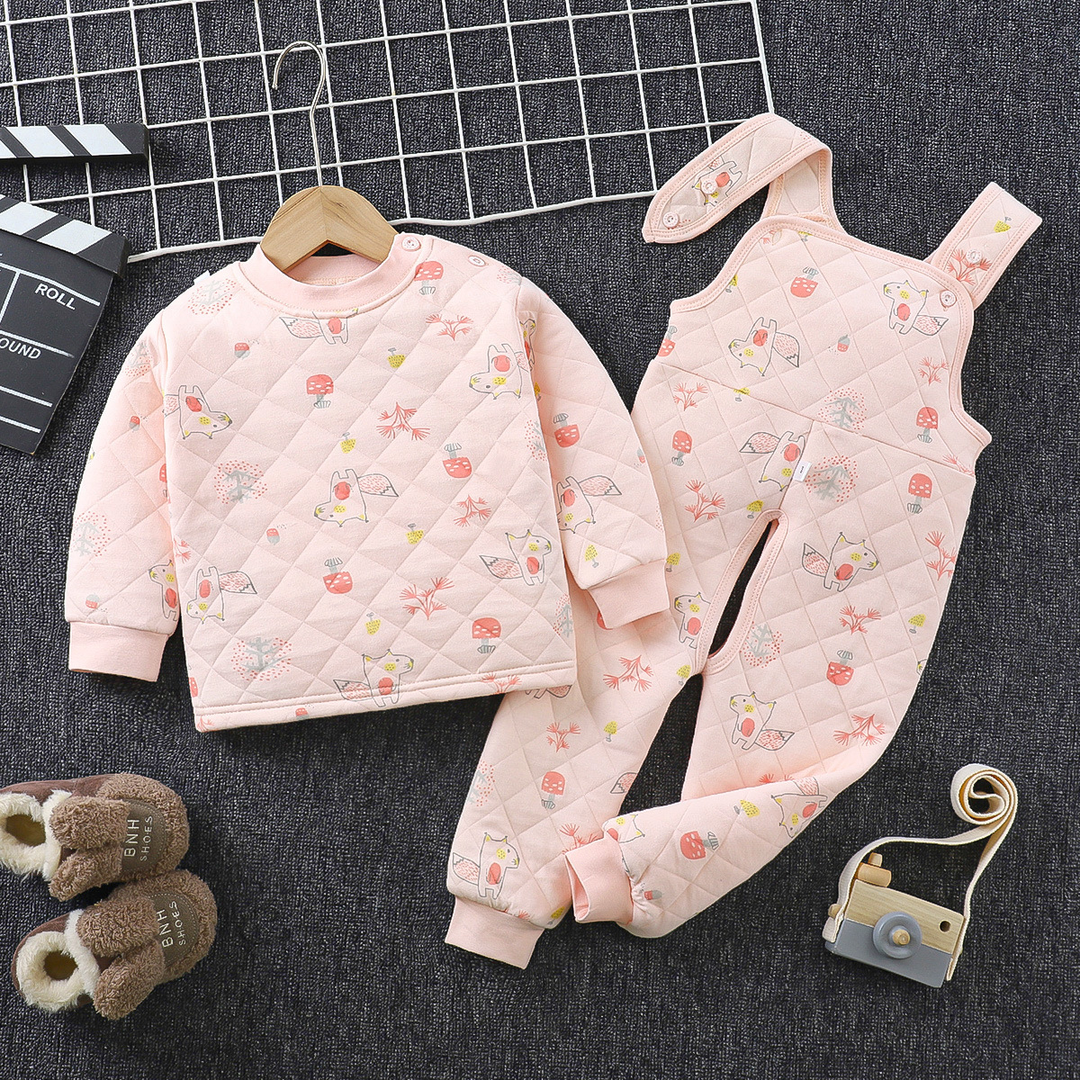 가을과 겨울 세트 어린이 3 층 열 속옷 소년과 소녀를위한 두꺼운 누비 이불 기모 열 가방 세트스토어 가기