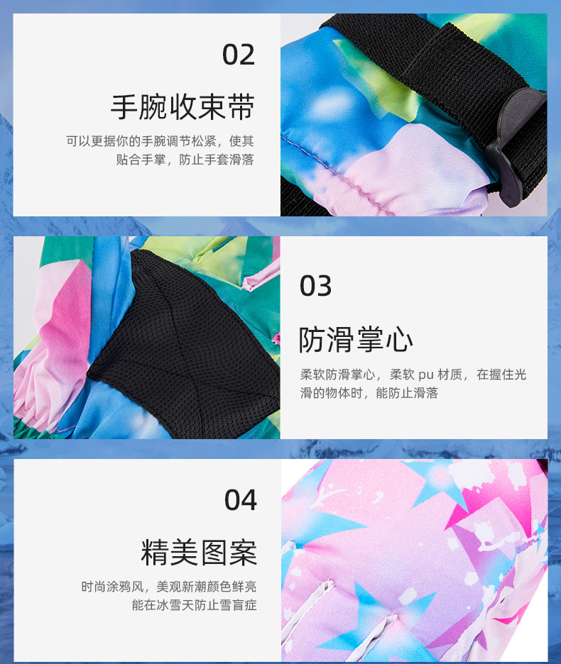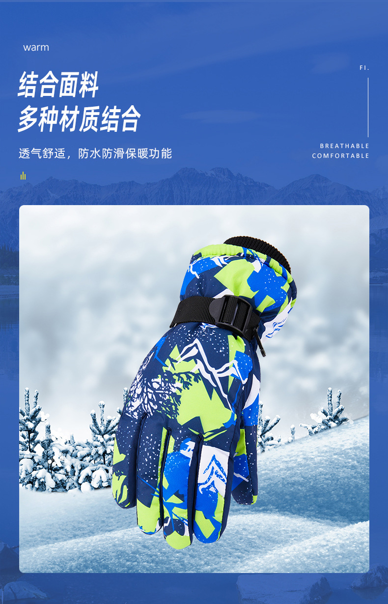 국경 간 겨울 어린이 스키 장갑 두꺼운 벨벳 미끄럼 방지 따뜻한 야외 눈 놀이 소년과 소녀 겨울을위한 내마모성 장갑