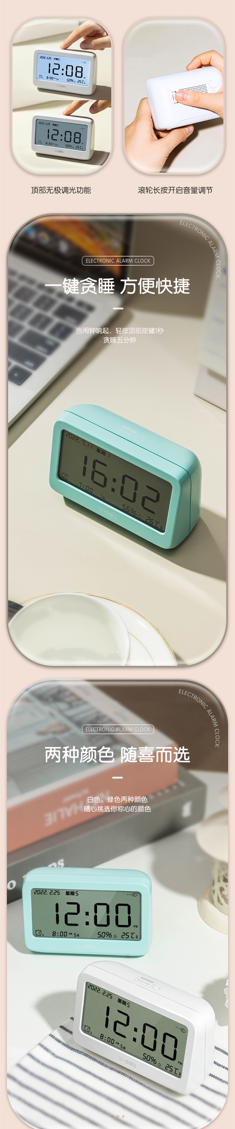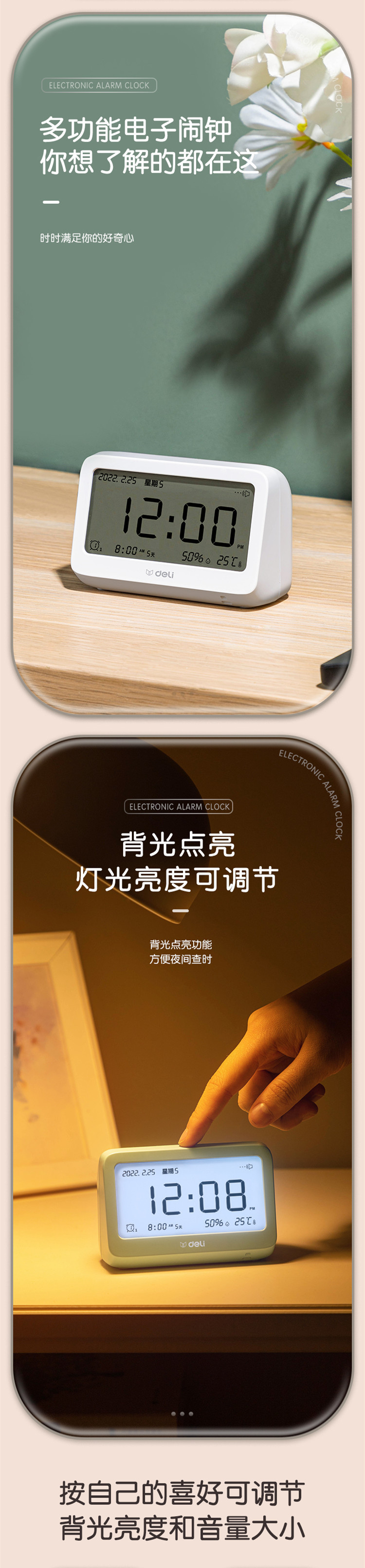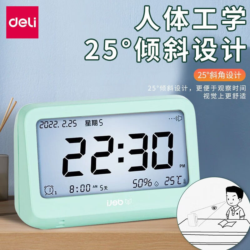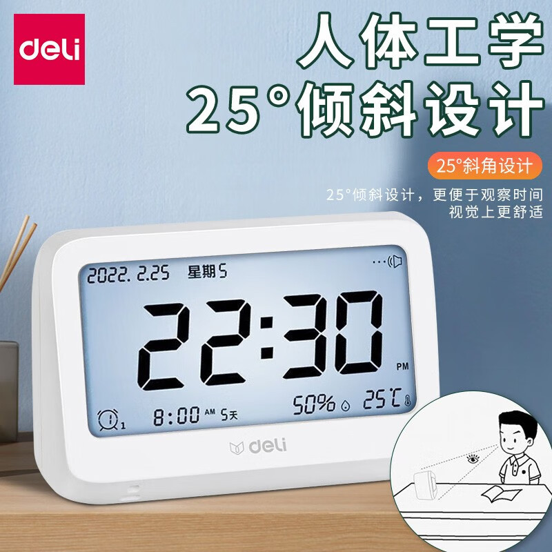 델리 LE100 전자 알람 시계 백라이트 온도 습도계 알람 시계 학생 어린이 침실 침대 옆 깨우기 시계 도매