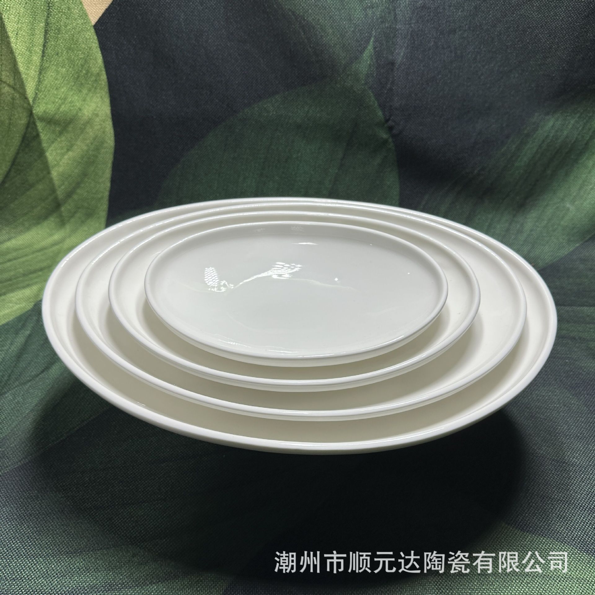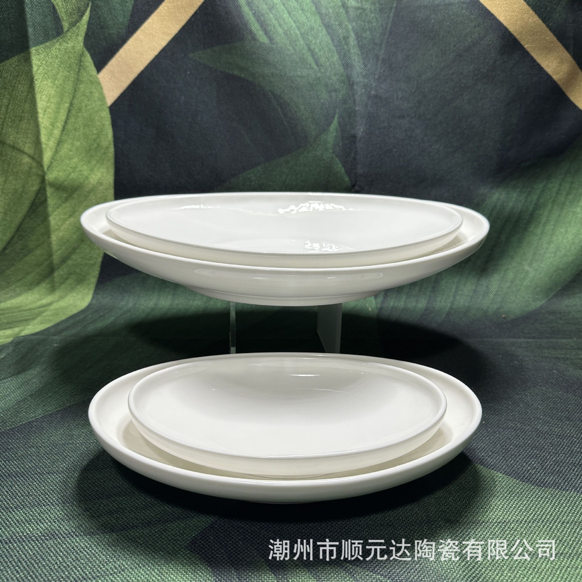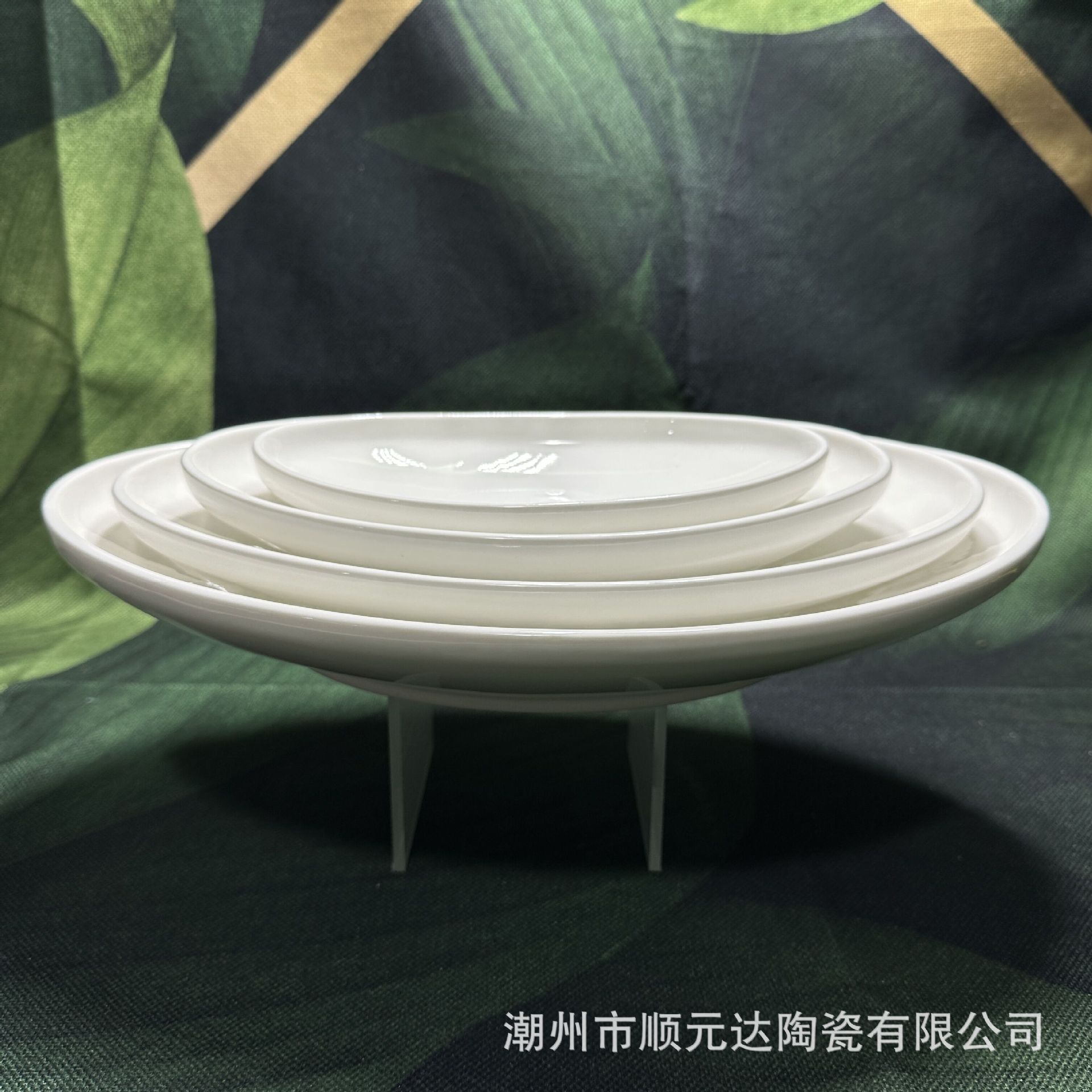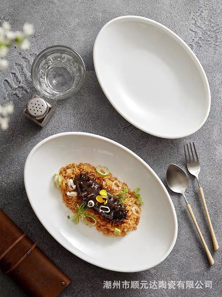 호텔 퓨어 화이트 세라믹 타원형 풋 플레이트 레스토랑 클럽 컨캐브 모양 차가운 요리 차가운 접시 접시 식기스토어 가기