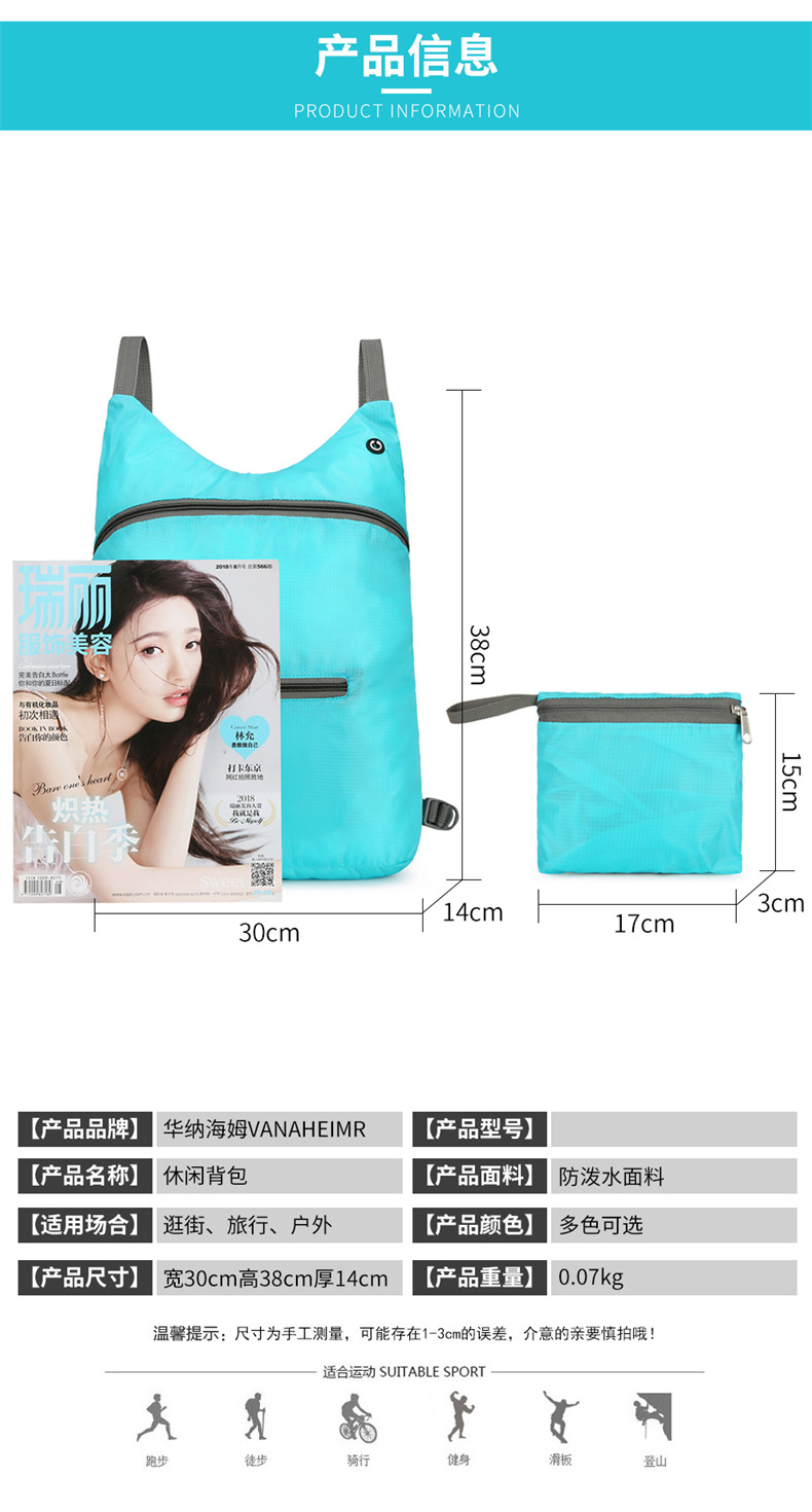 크로스 보더 경량 스킨 백 스포츠 접이식 가방 여행 가방 경량 보관 스포츠 야외 휴대용 접이식 배낭스토어 가기