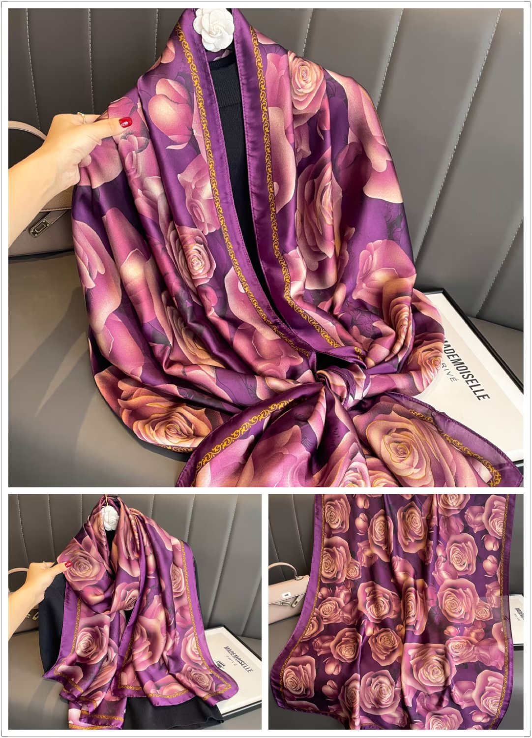 고급 실크 스카프 양산 선 스크린 숄 한국 유화 인쇄 긴 실크 스카프 비치 타월 도매