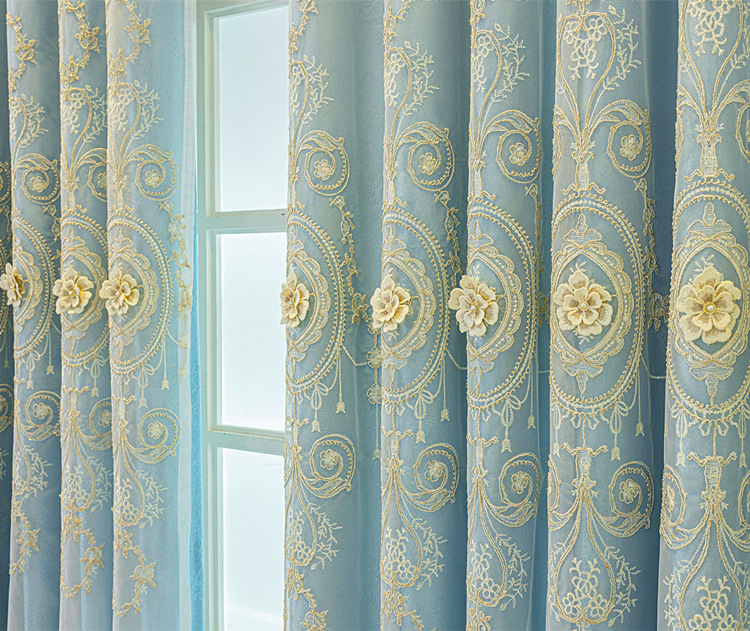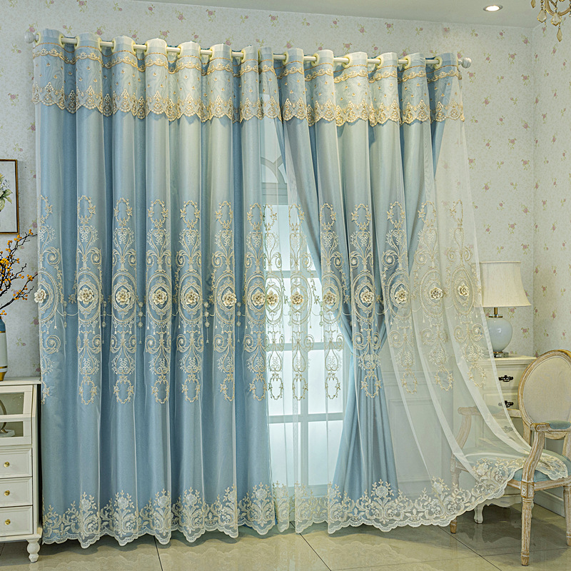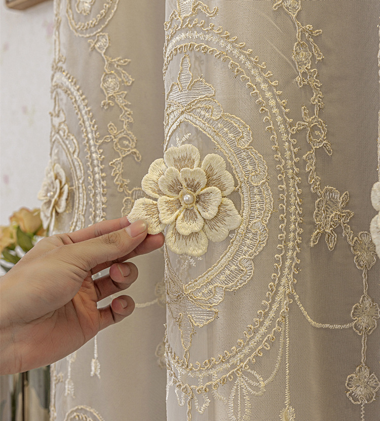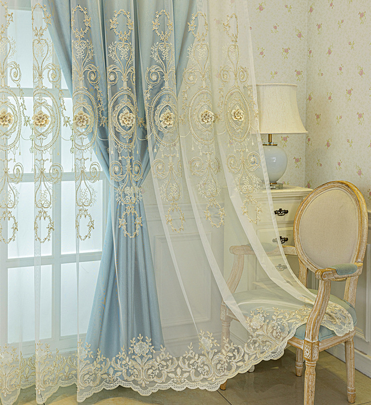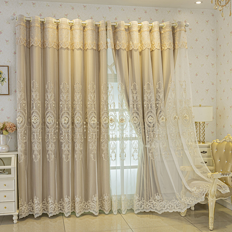 유럽식 간단한 커튼 더블 레이어 천 및 원사 통합 하이 엔드 대기 고급 양각 거실 침실 음영 마감 제품스토어 가기