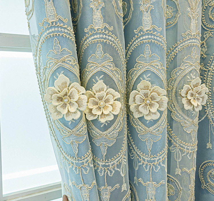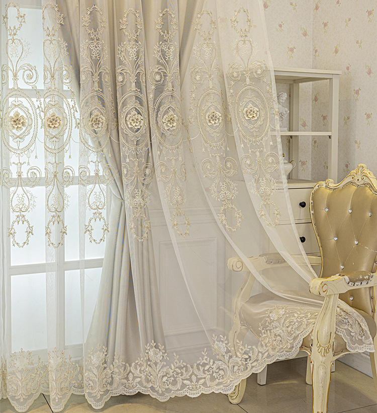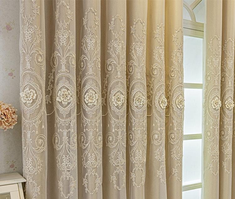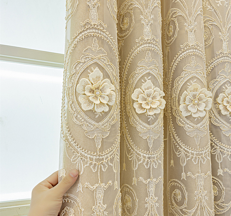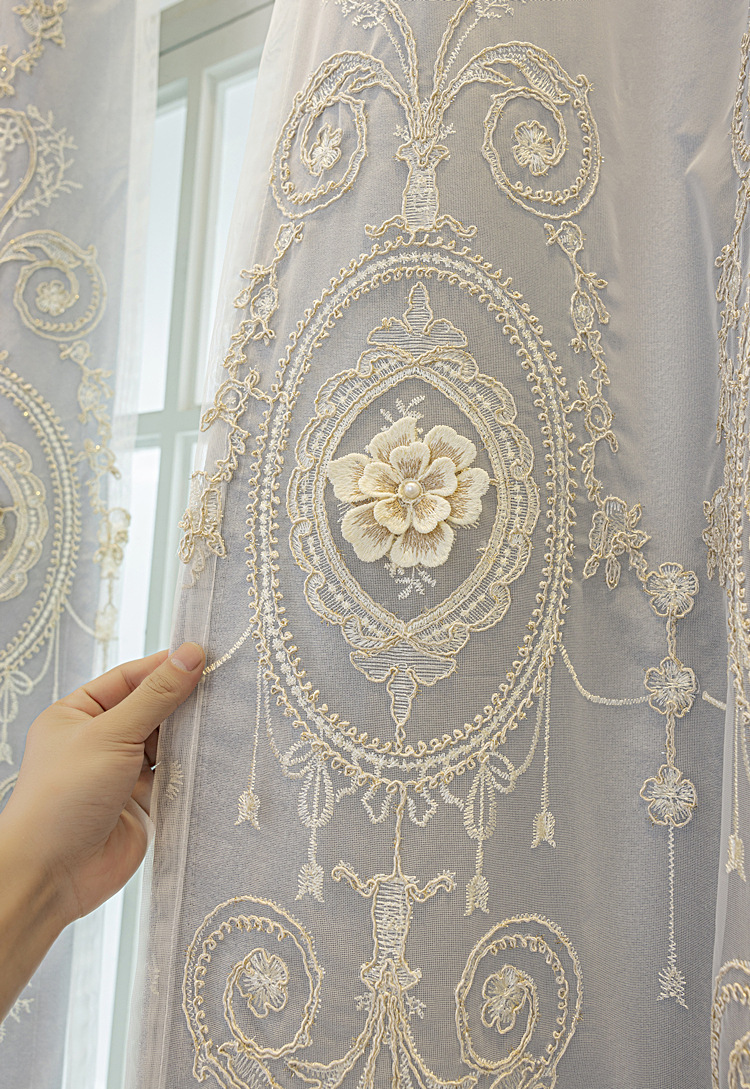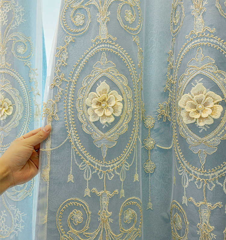 유럽식 간단한 커튼 더블 레이어 천 및 원사 통합 하이 엔드 대기 고급 양각 거실 침실 음영 마감 제품스토어 가기