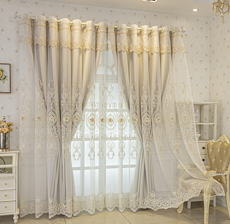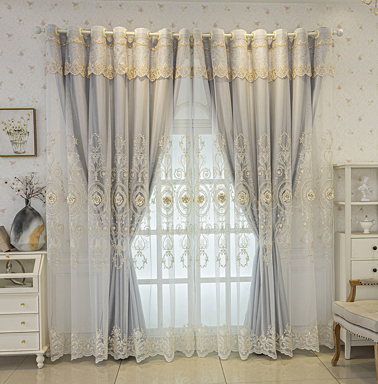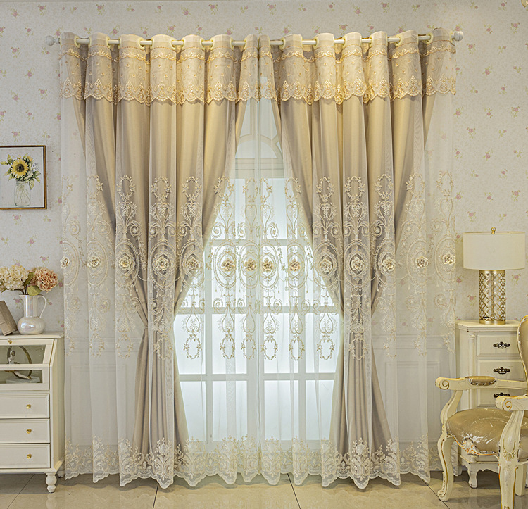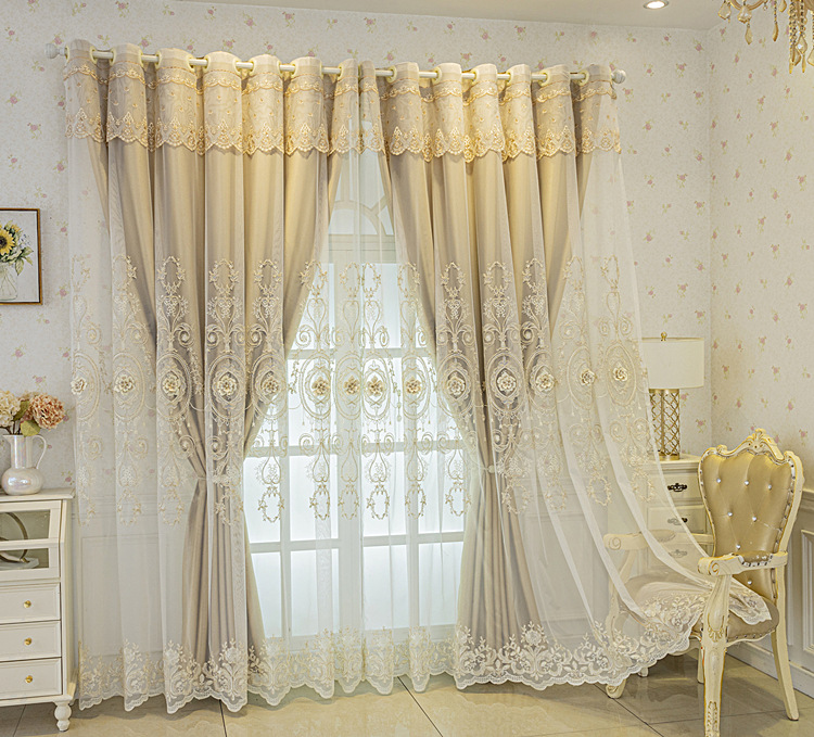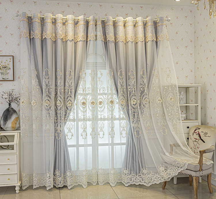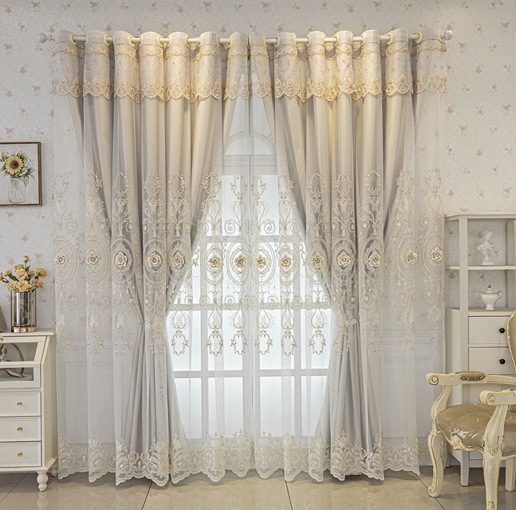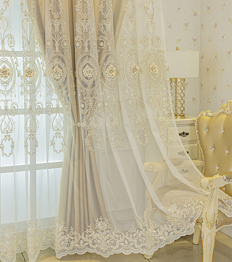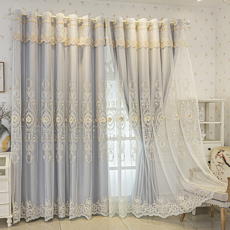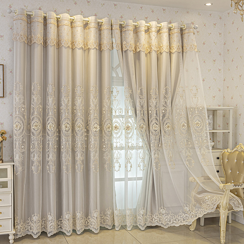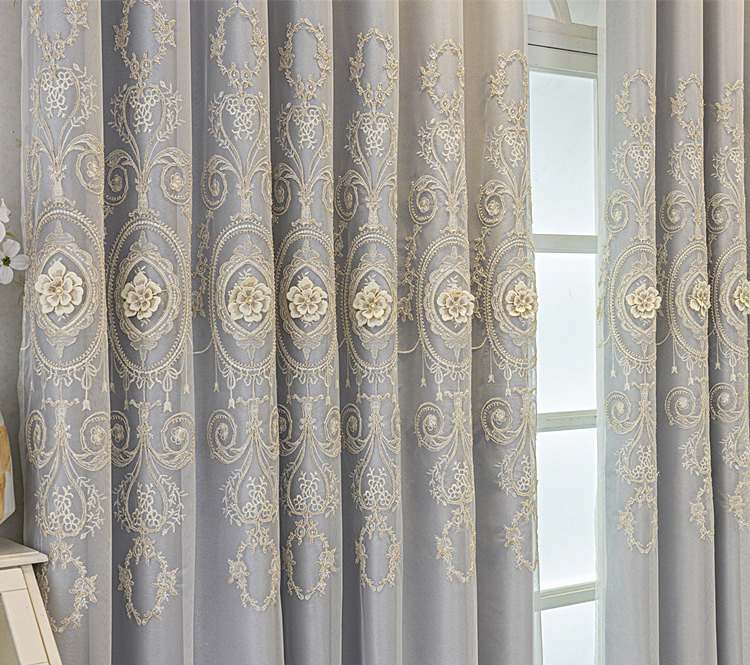 유럽식 간단한 커튼 더블 레이어 천 및 원사 통합 하이 엔드 대기 고급 양각 거실 침실 음영 마감 제품