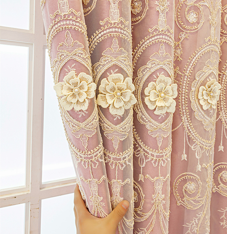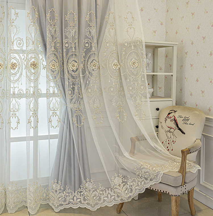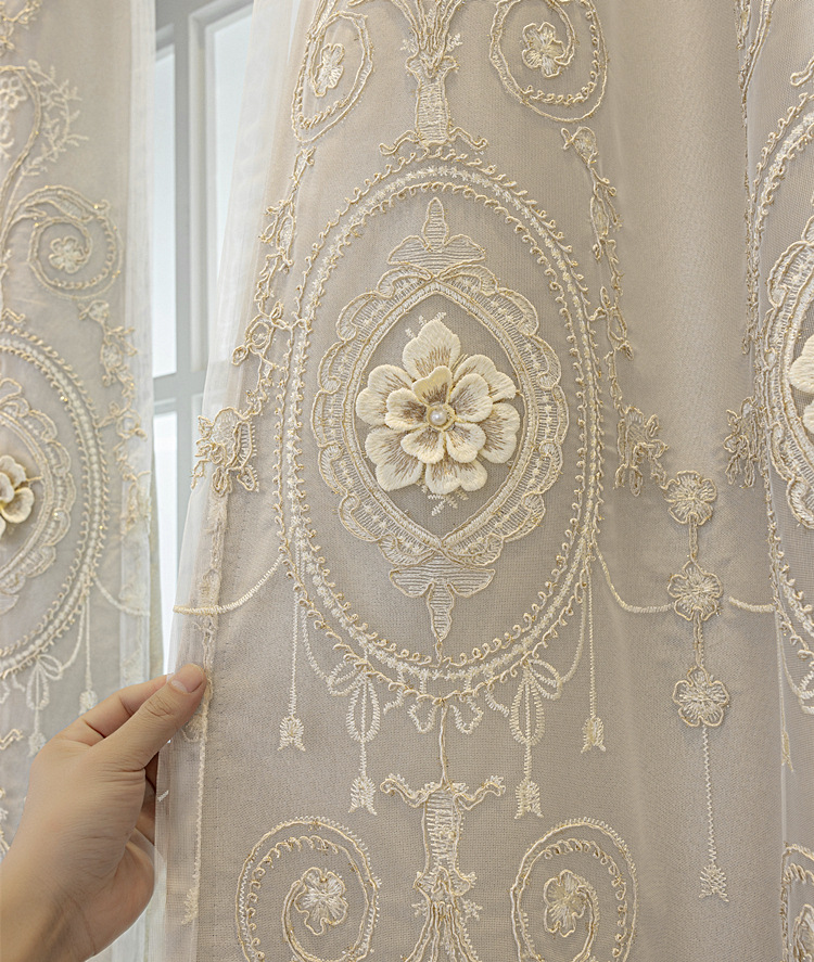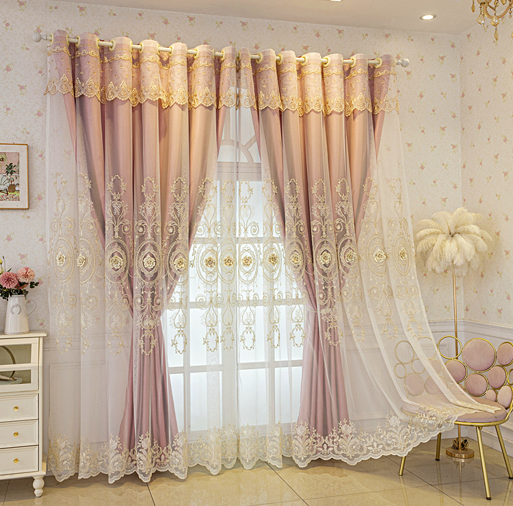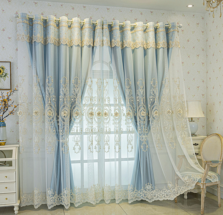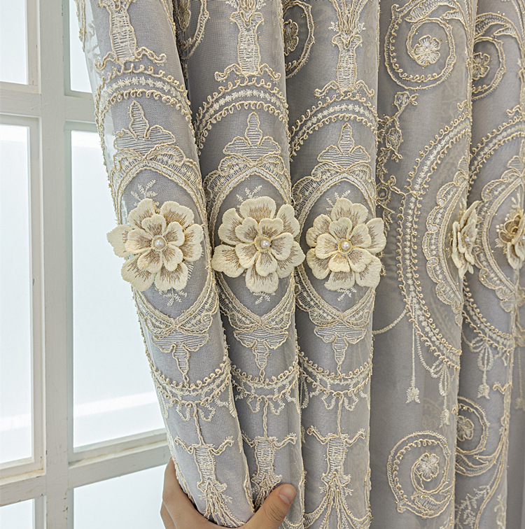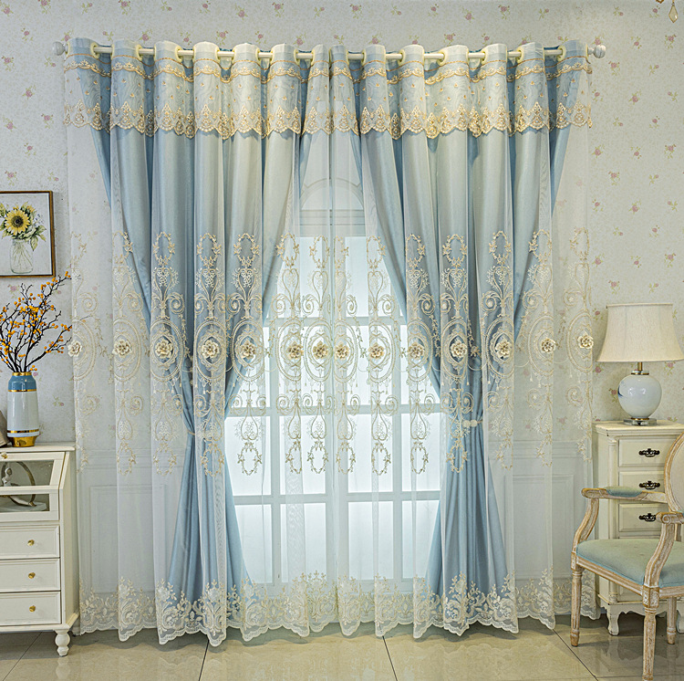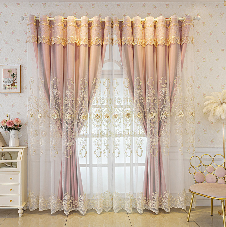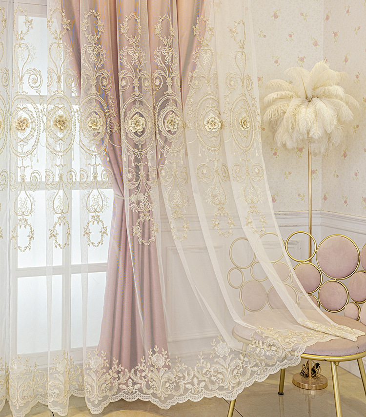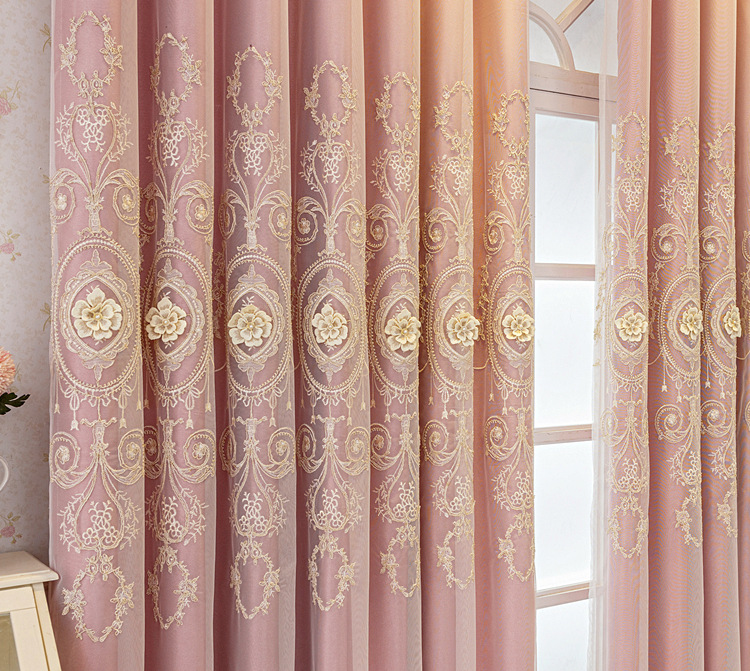유럽식 간단한 커튼 더블 레이어 천 및 원사 통합 하이 엔드 대기 고급 양각 거실 침실 음영 마감 제품
