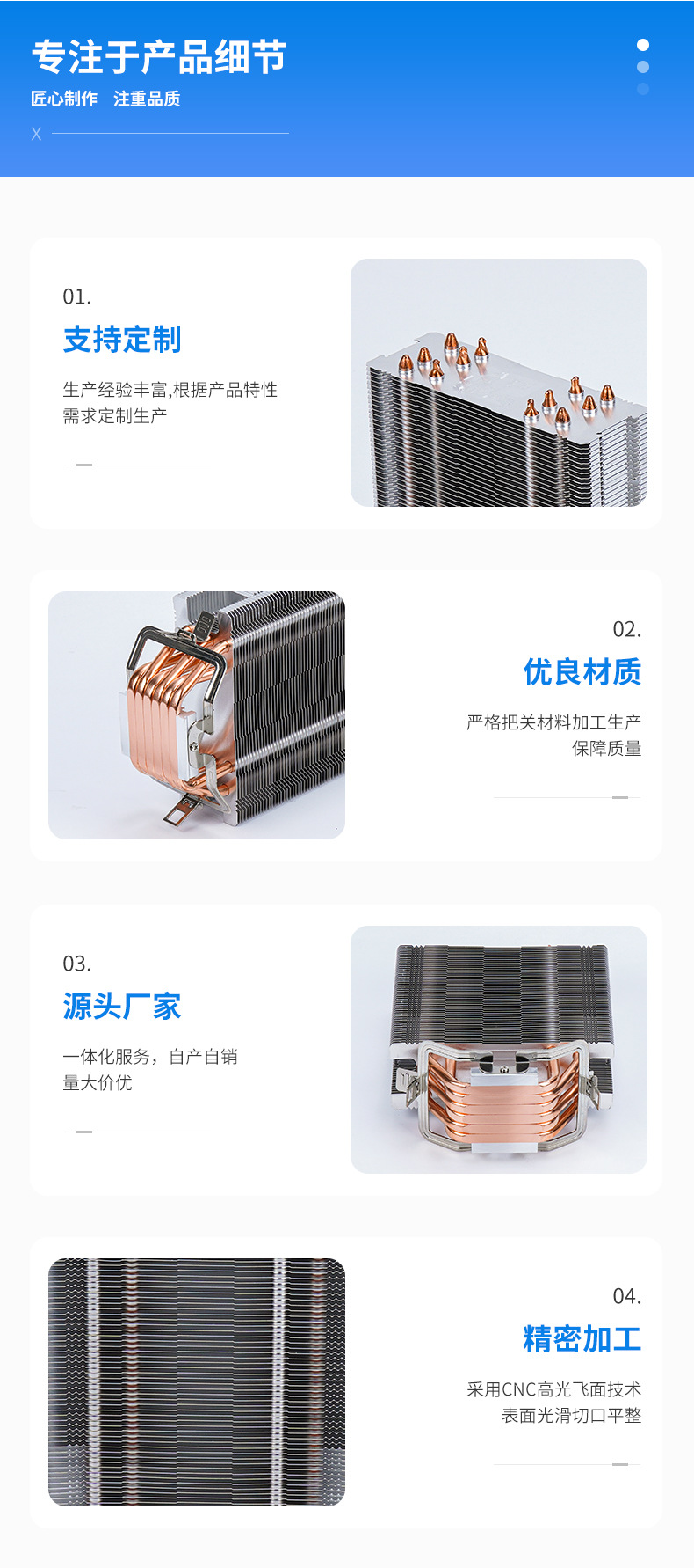 공장 도매 단일 타워 6 열 파이프 라디에이터 CPU 라디에이터 냉장고 냉동 장비 반도체 공랭식 라디에이터스토어 가기