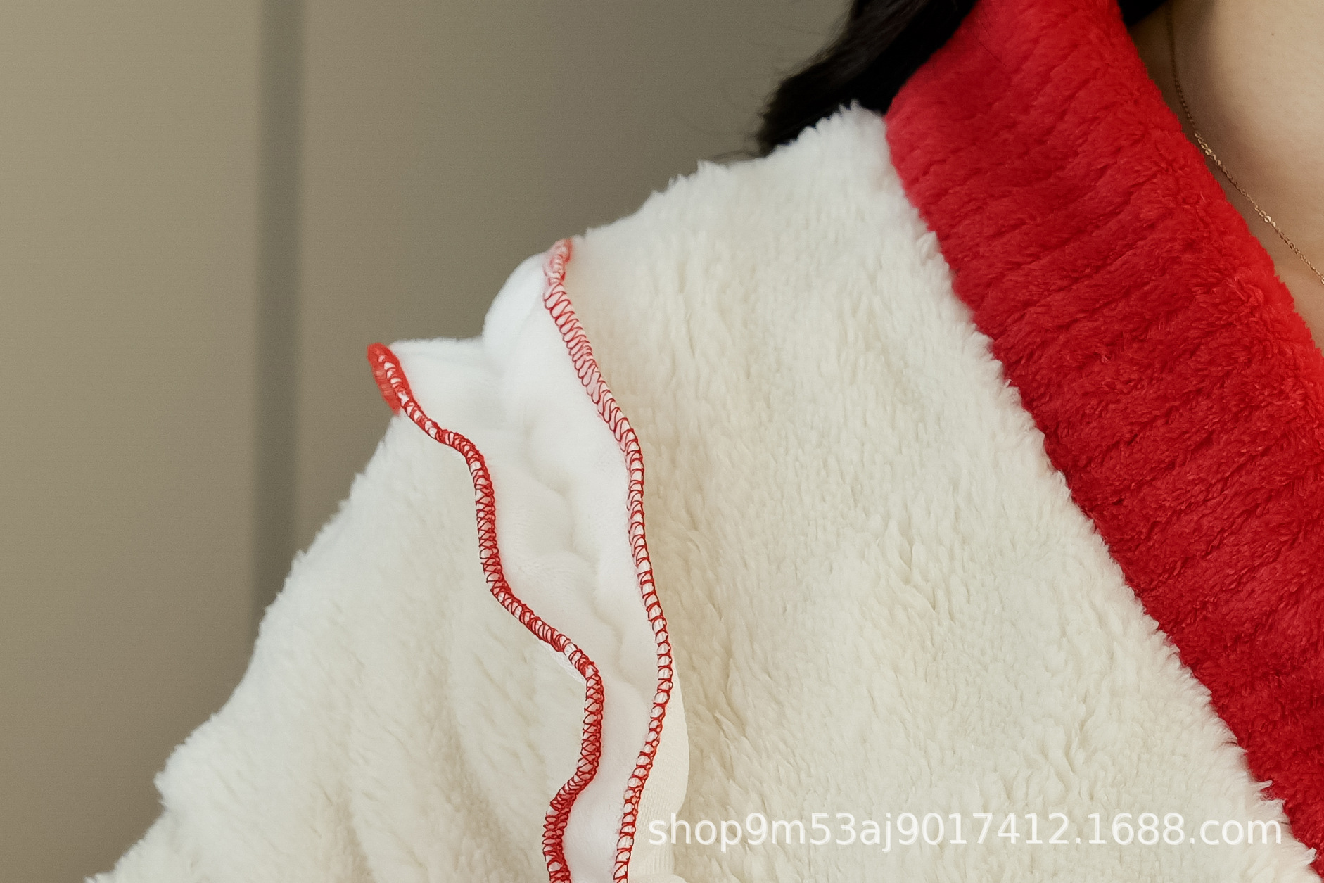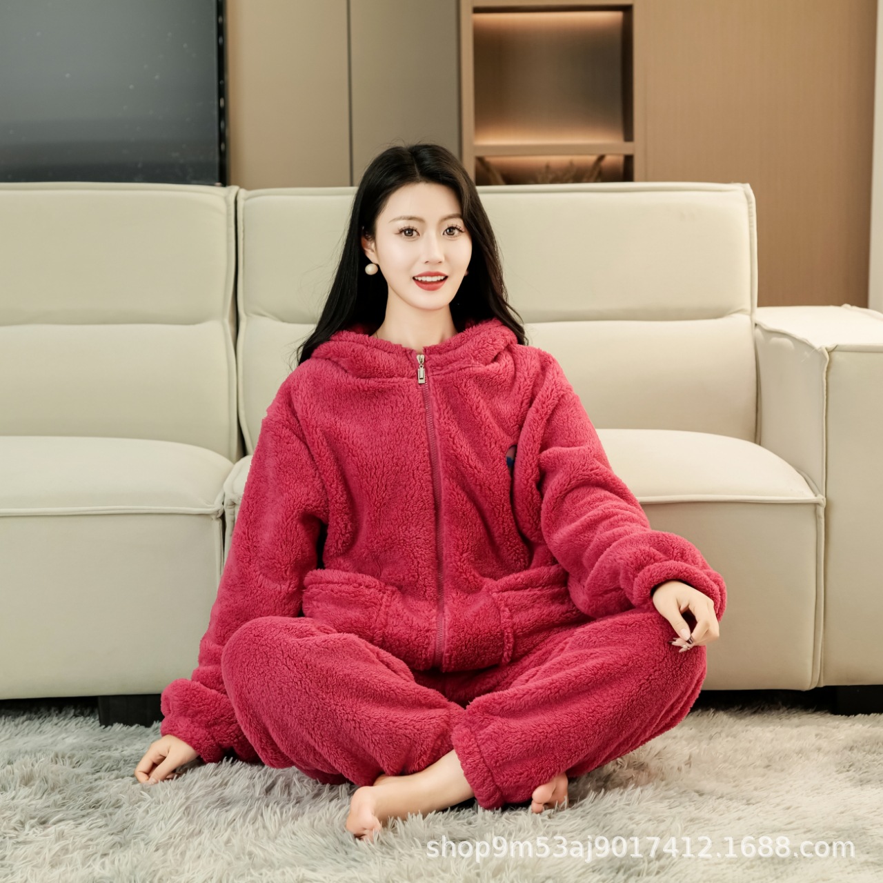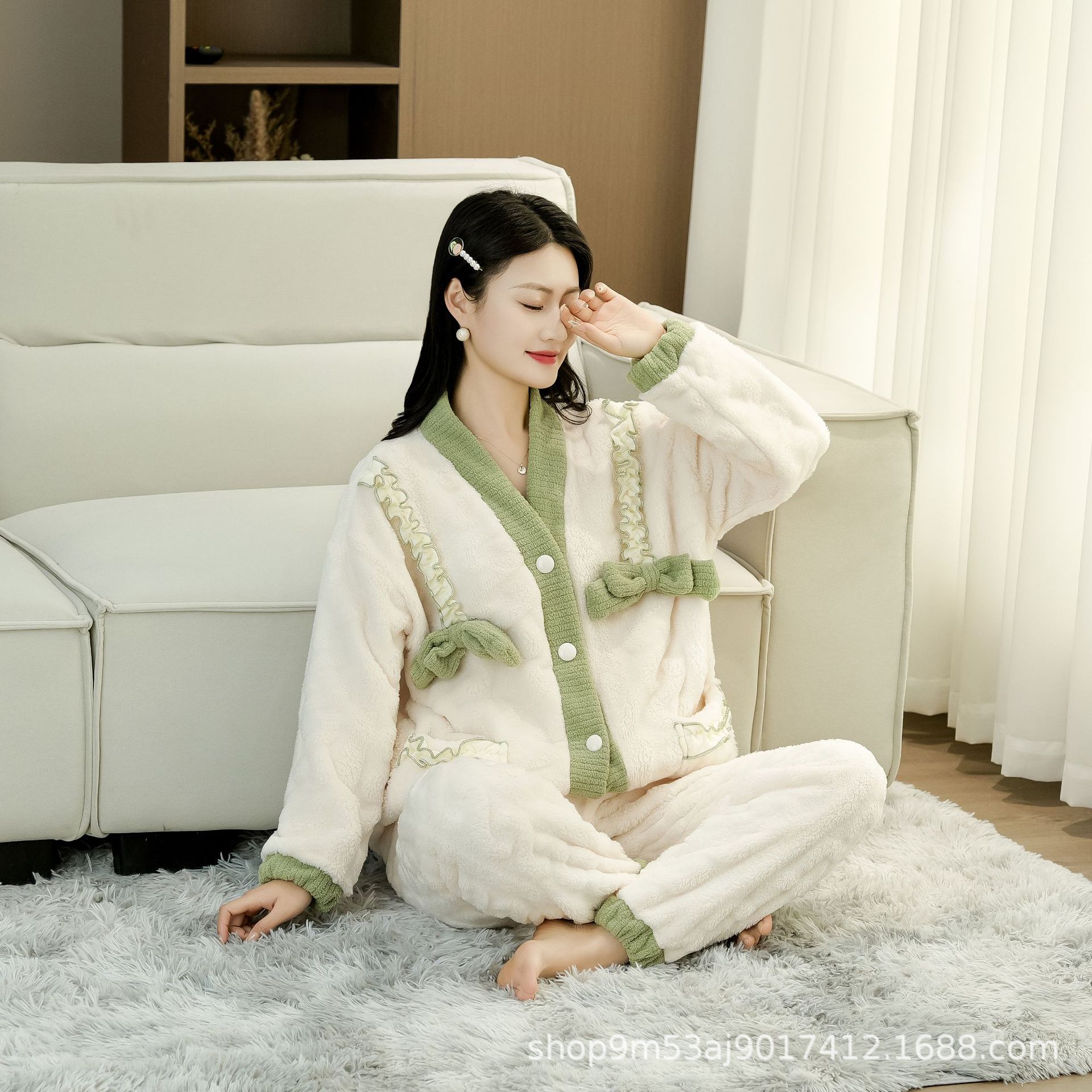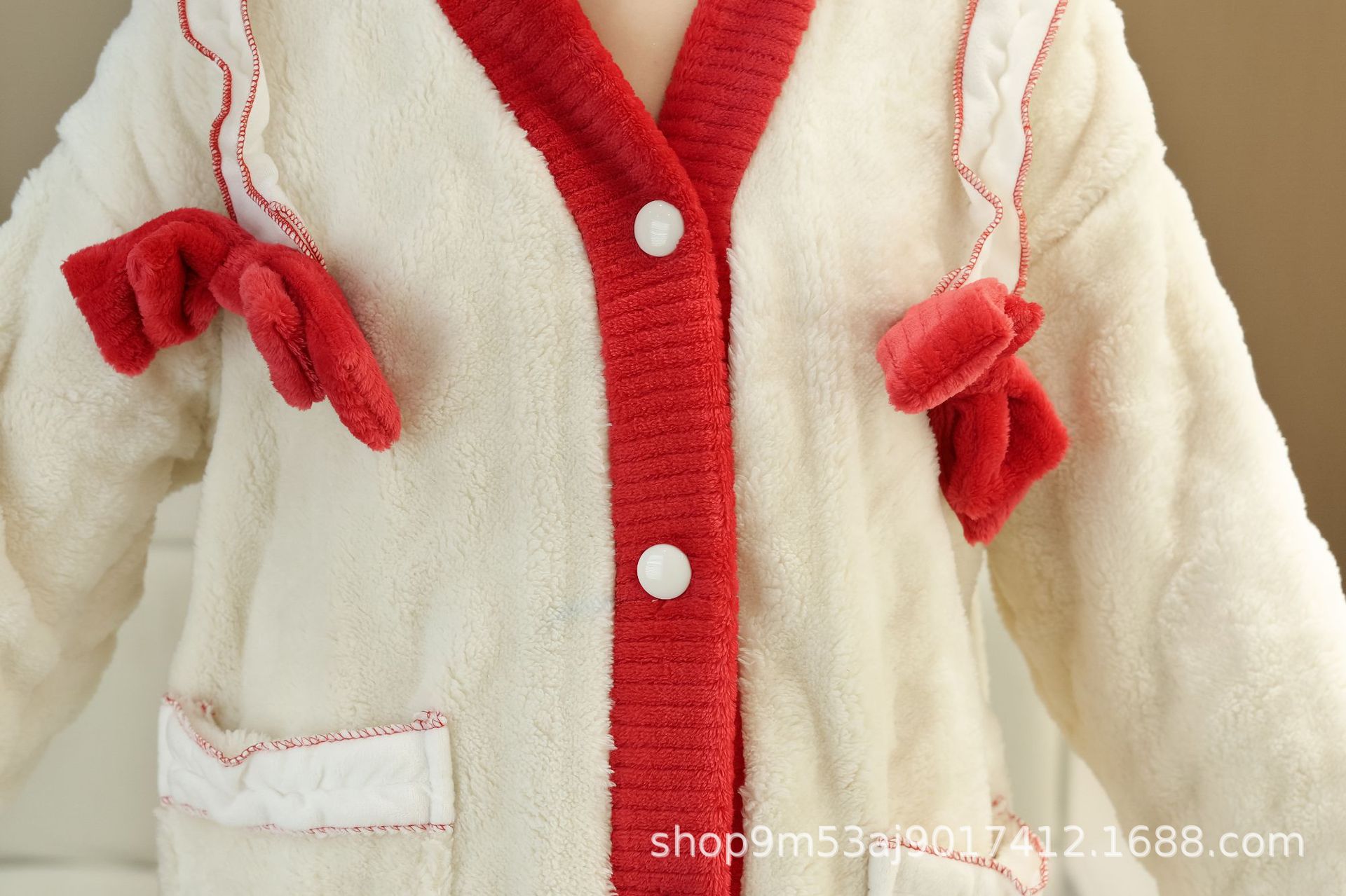 산호 양털 잠옷 여자의 봄 가을과 겨울 두꺼운 따뜻한 귀여운 플란넬 가정 옷 공주 스타일 세트 핑크 곰