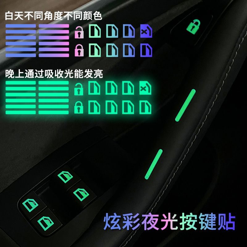 차내 기능 키 스위치 버튼 야광 자동차 스티커 방수 내마모성 형광 스티커 자동차 윈도우 리프팅 스위치 스티커