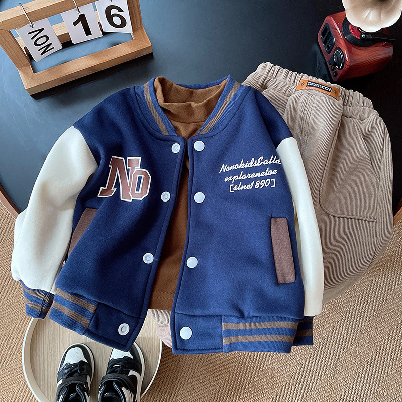 가을과 겨울 기모 남아 코트 2023 새로운 어린이 야구 의류 겨울 옷 유행 아동 의류 서양 스타일 아기 코트 두꺼운스토어 가기