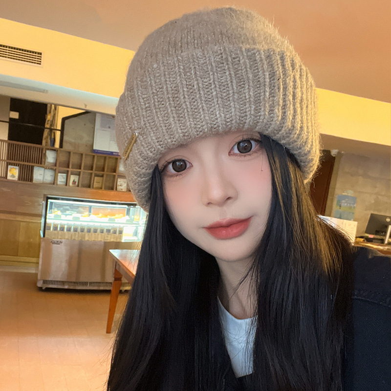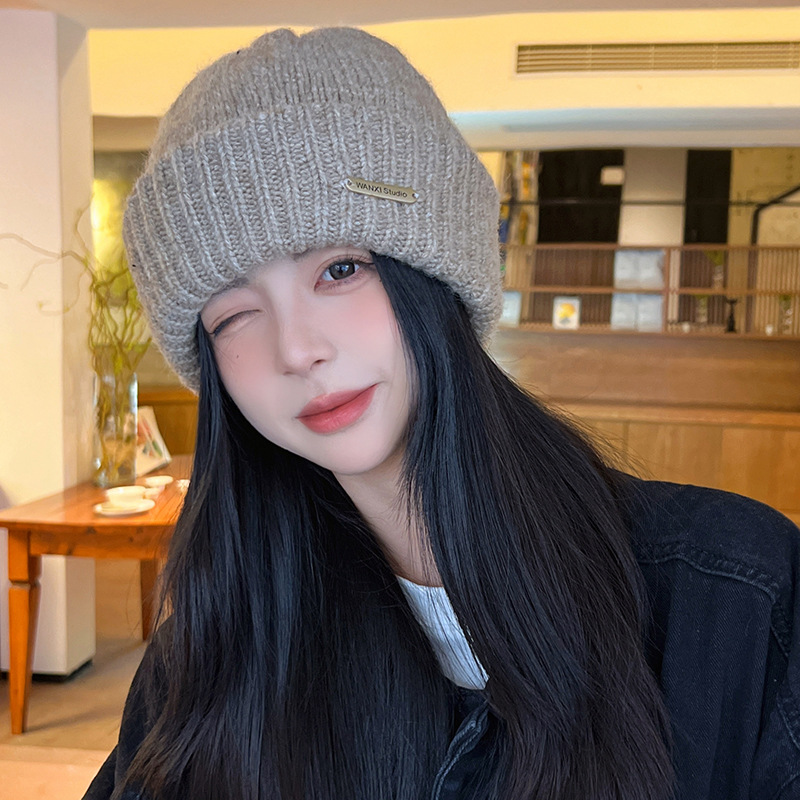 캐주얼 모든 매치 편안한 따뜻한 니트 모자 겨울 방한 컬링 독특한 프린트 울 모자 귀마개 머리 모자