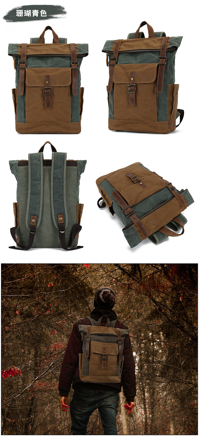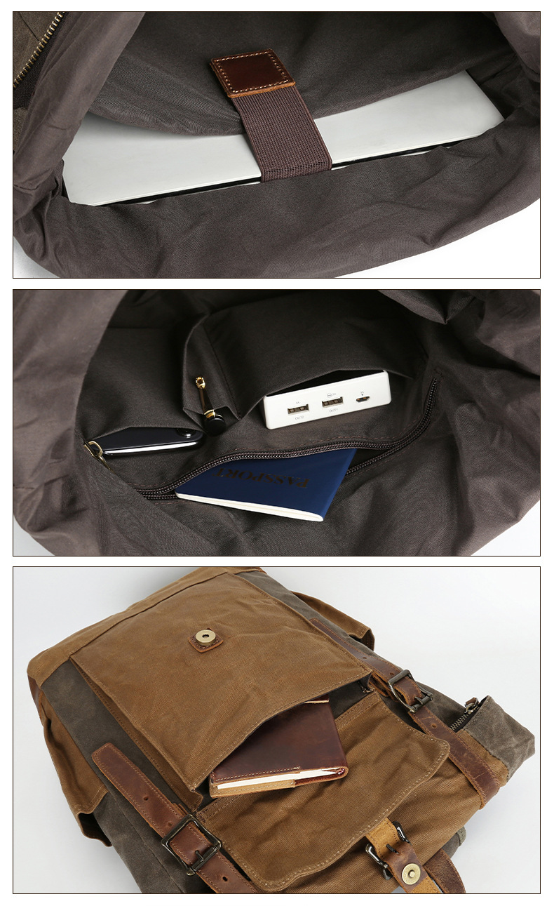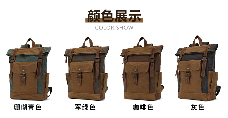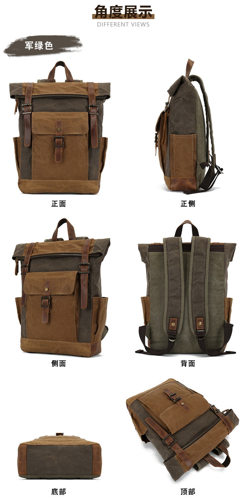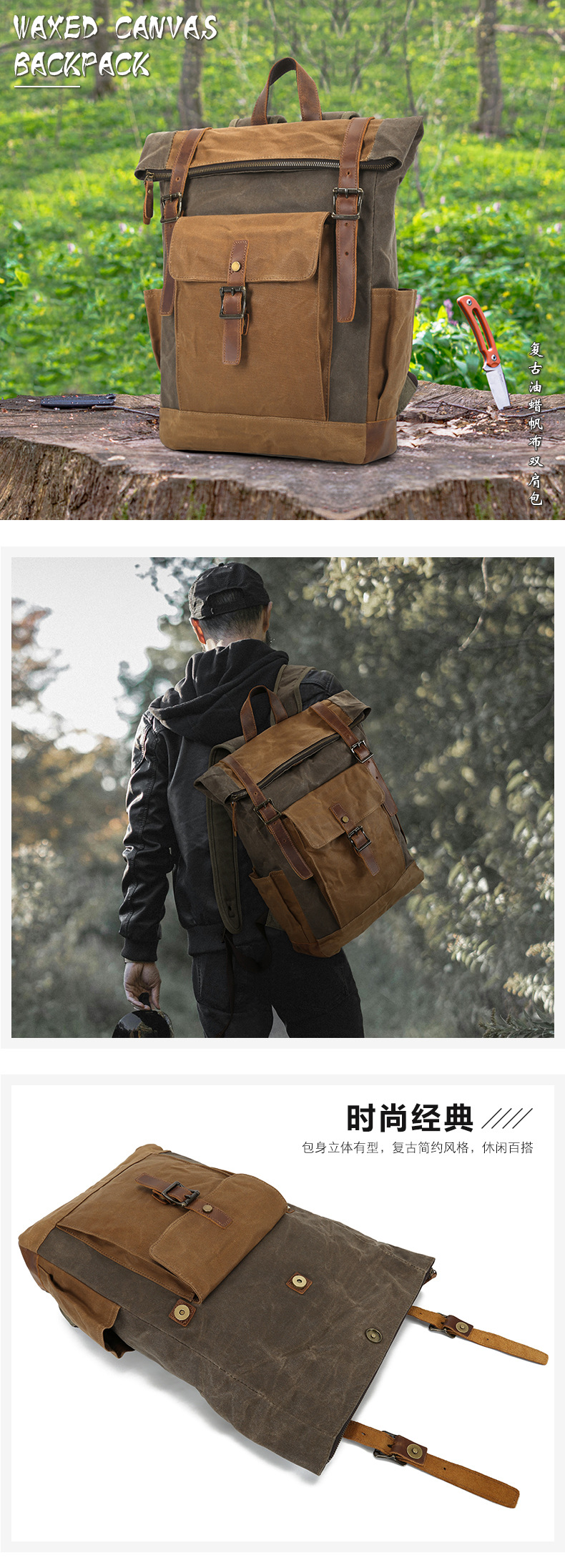 소스 포인트 천 가방 빈티지 오일 왁스 캔버스 배낭 야외 여행 등산 가방 하이킹 방수 미친 말 가죽 남성용 가방