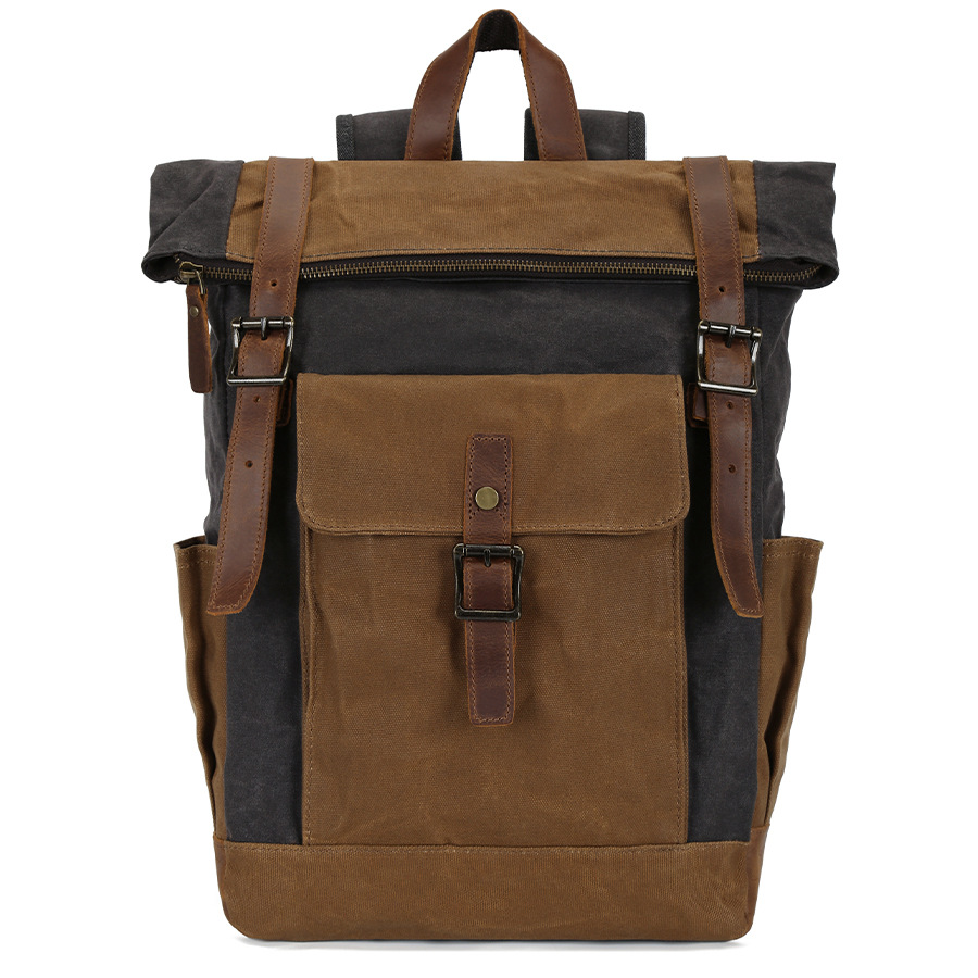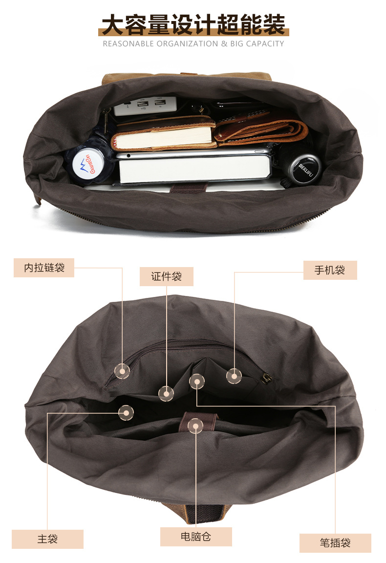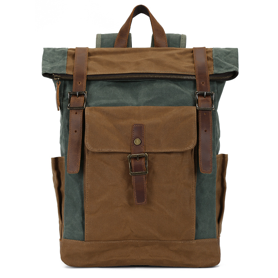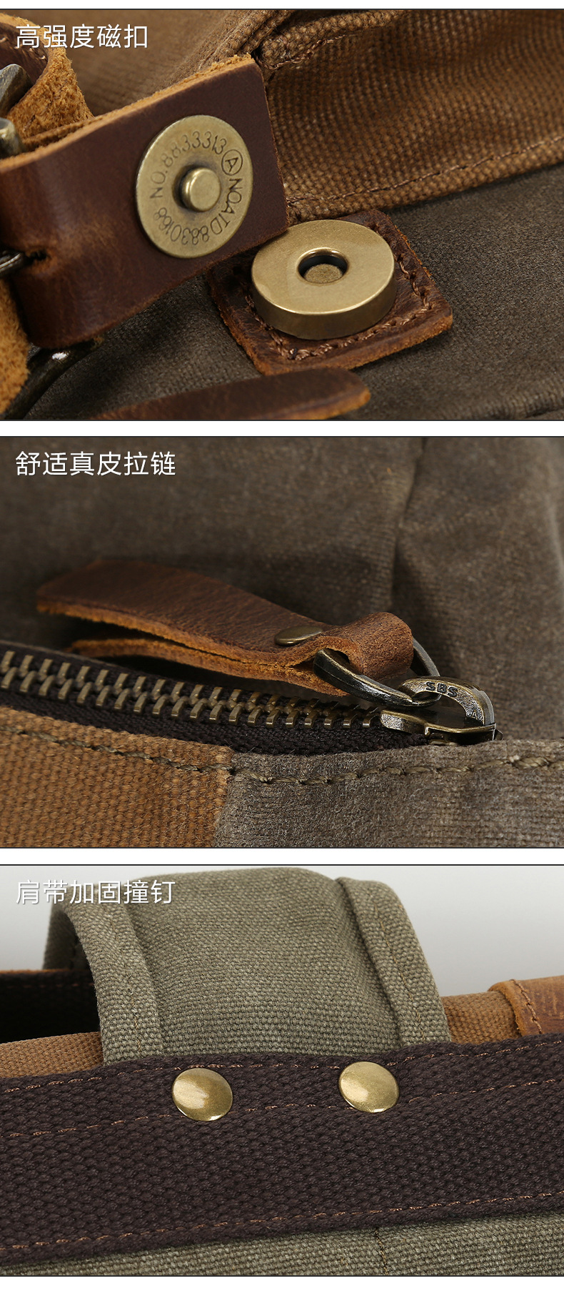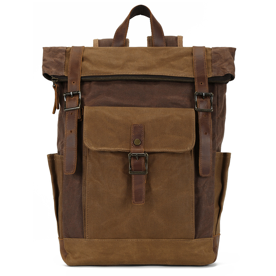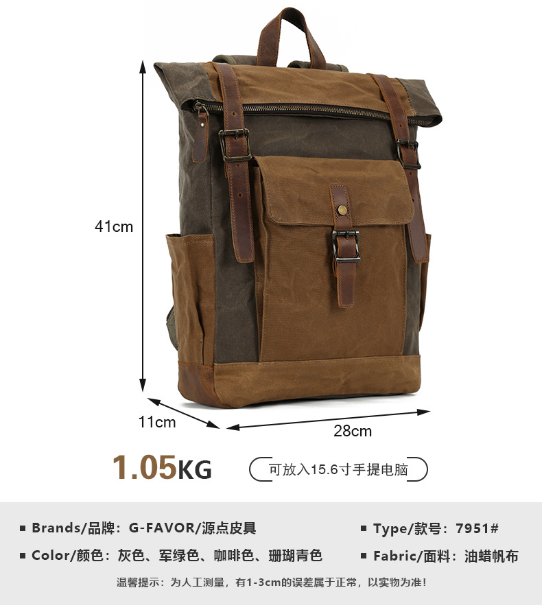 소스 포인트 천 가방 빈티지 오일 왁스 캔버스 배낭 야외 여행 등산 가방 하이킹 방수 미친 말 가죽 남성용 가방