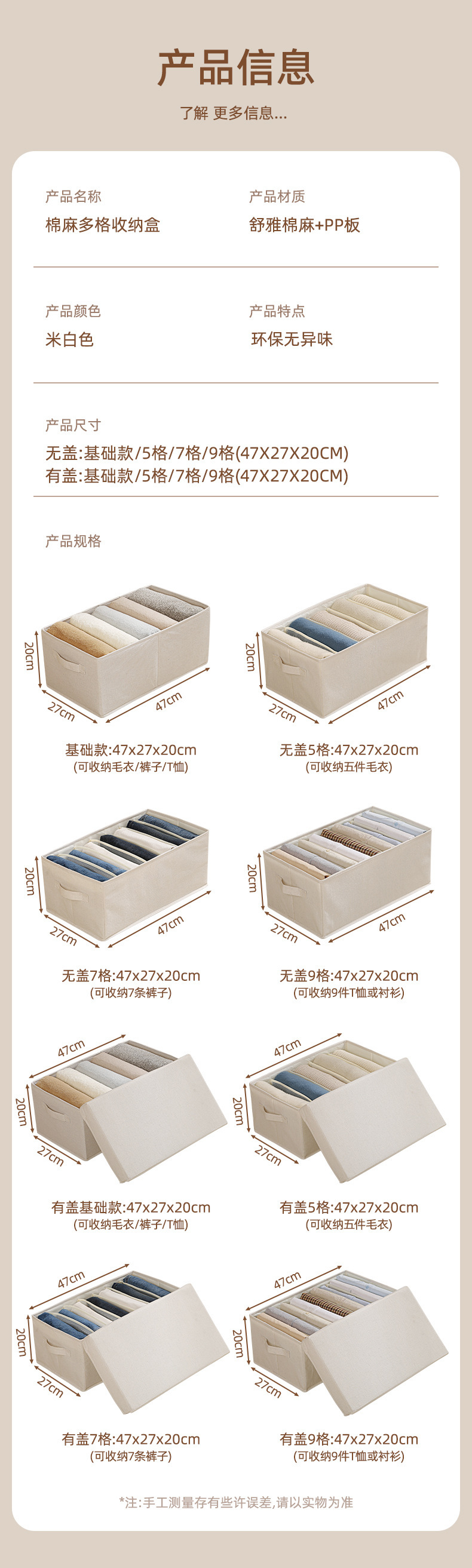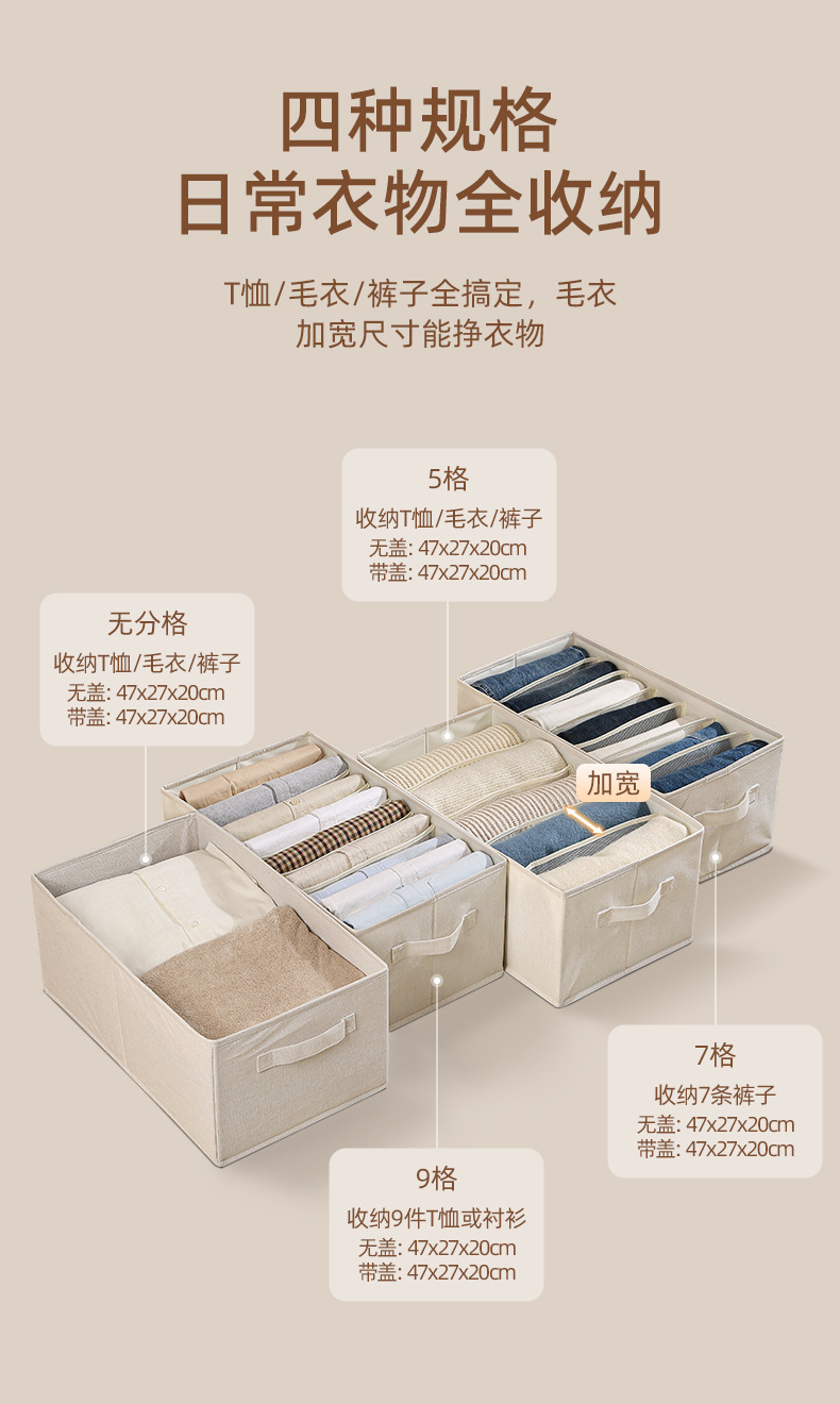 면과 린넨 보관함 의류 바지 보관 커버 접이식 패브릭 의류 휴대용 보관함