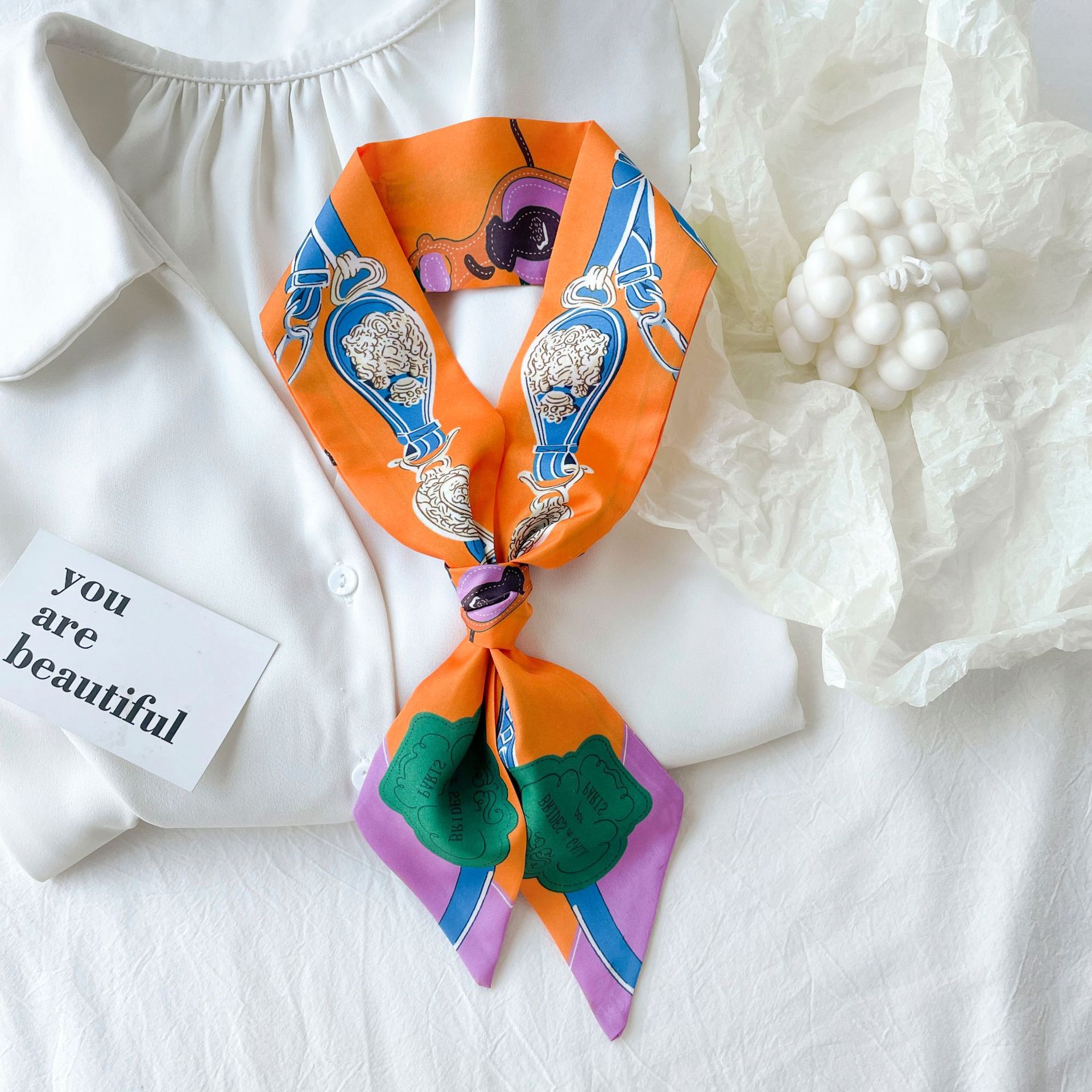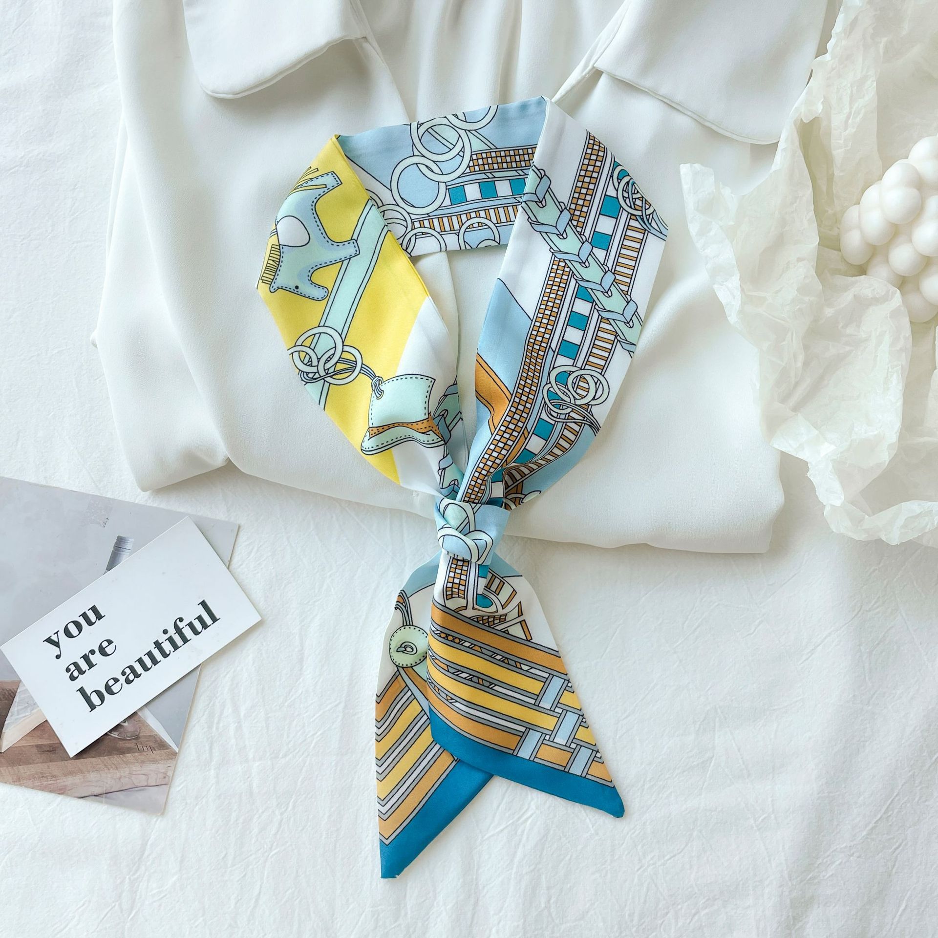 봄과 여름 새로운 실크 스카프 조커 문학 헤어 밴드 바인딩 포니테일 바인딩 백 활 리본 모던 윈드 스몰 스카프 도매