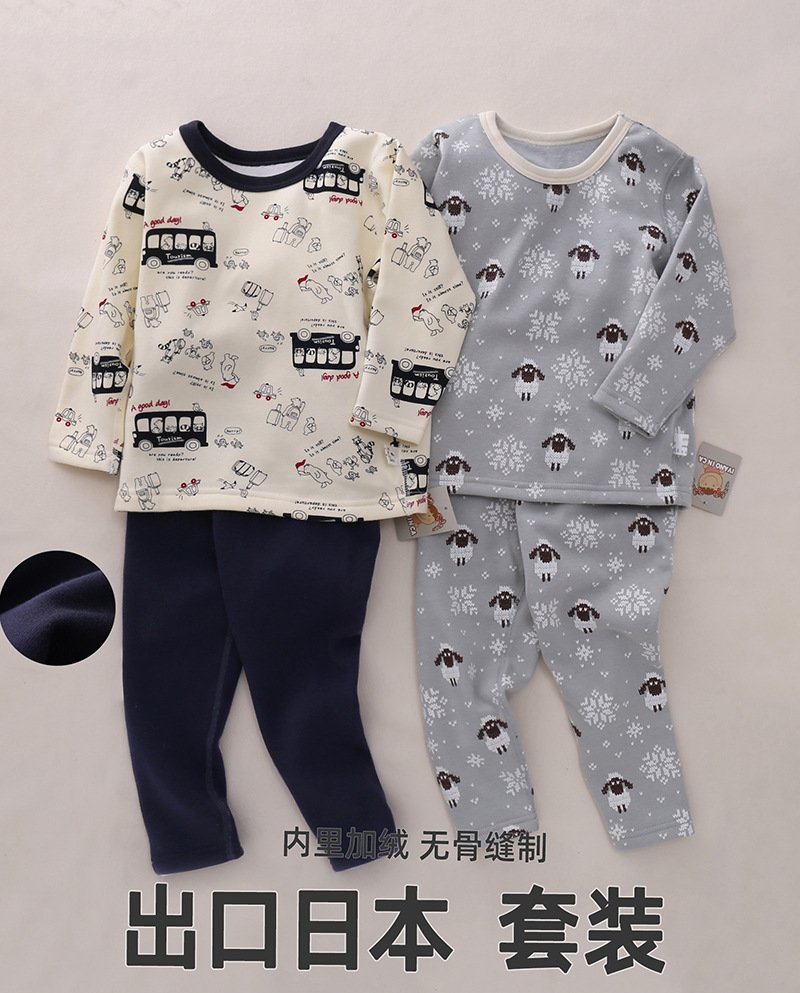 일본의 가을과 겨울 어린이 기모 가정 옷 세트 클래스 면 소년 아기 뼈없는 열 속옷 잠옷 세트스토어 가기
