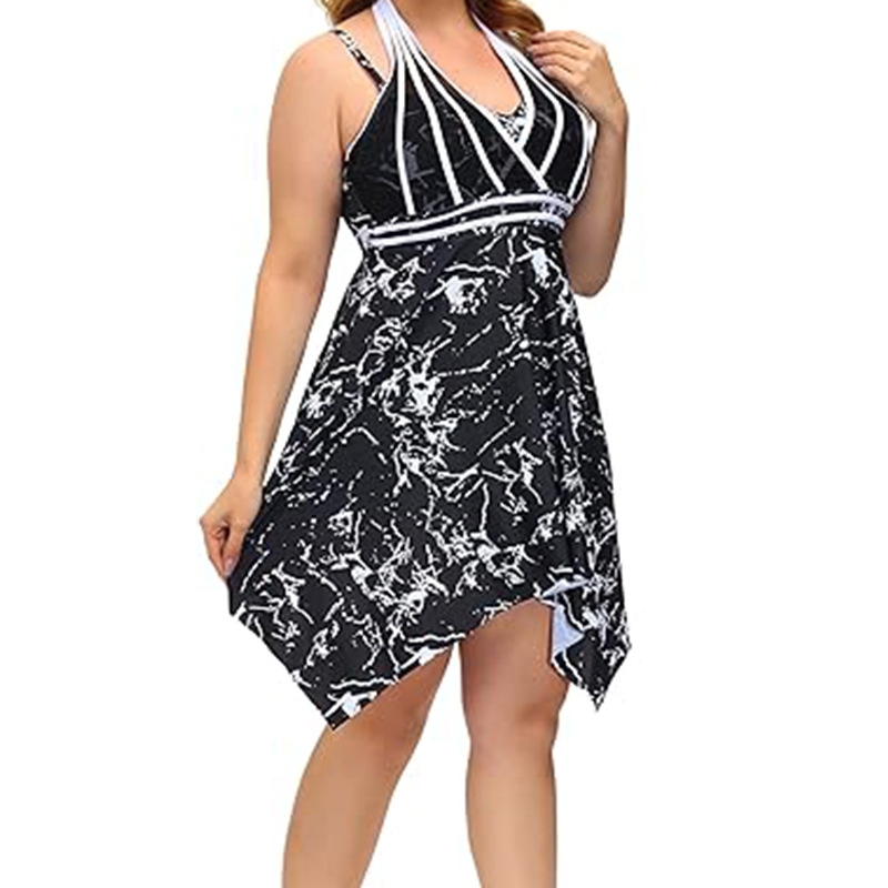 새로운 아마존 인쇄 지방 플러스 사이즈 수영복 하이 웨이스트 비치 배꼽 취재 태양 보수적 인 원피스 수영복