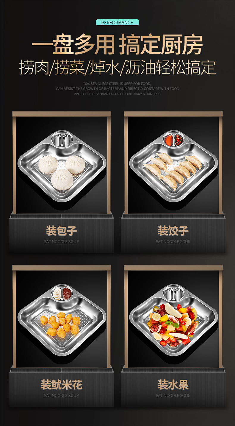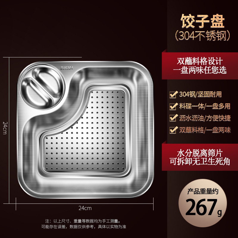 304 스테인레스 스틸 만두 접시 재료 가정용 만두 접시 더블 레이어 분리형 대용량 다용도 소형 만두 접시