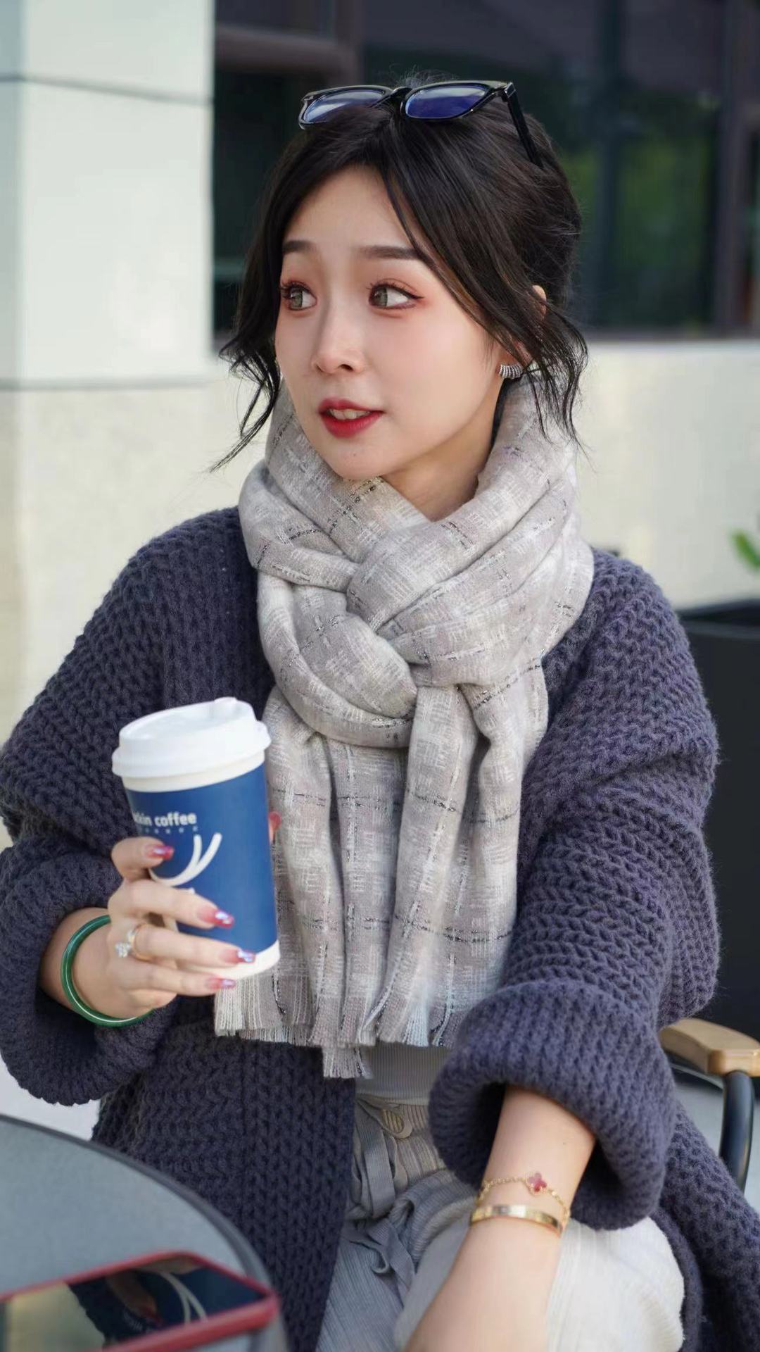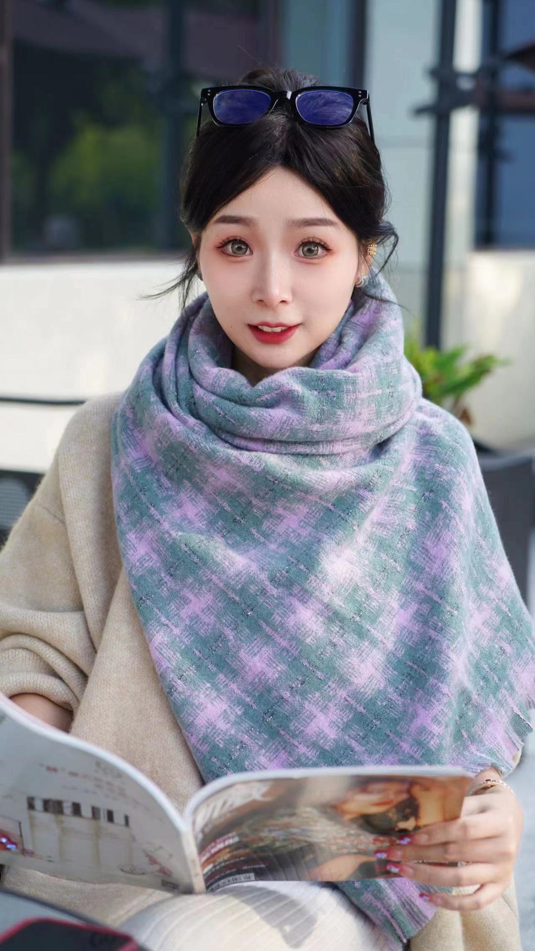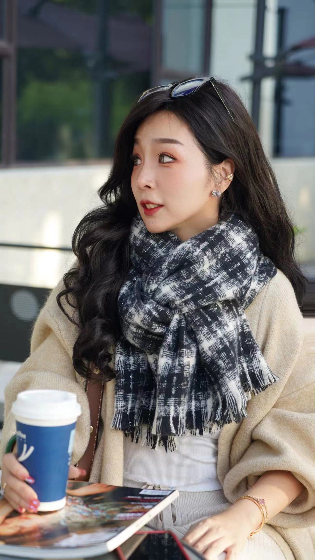 2023 가을 새로운 모조 캐시미어 루프 원사 실버 격자 무늬 한국 동대문 학생 두꺼운 따뜻한 패션 스카프스토어 가기