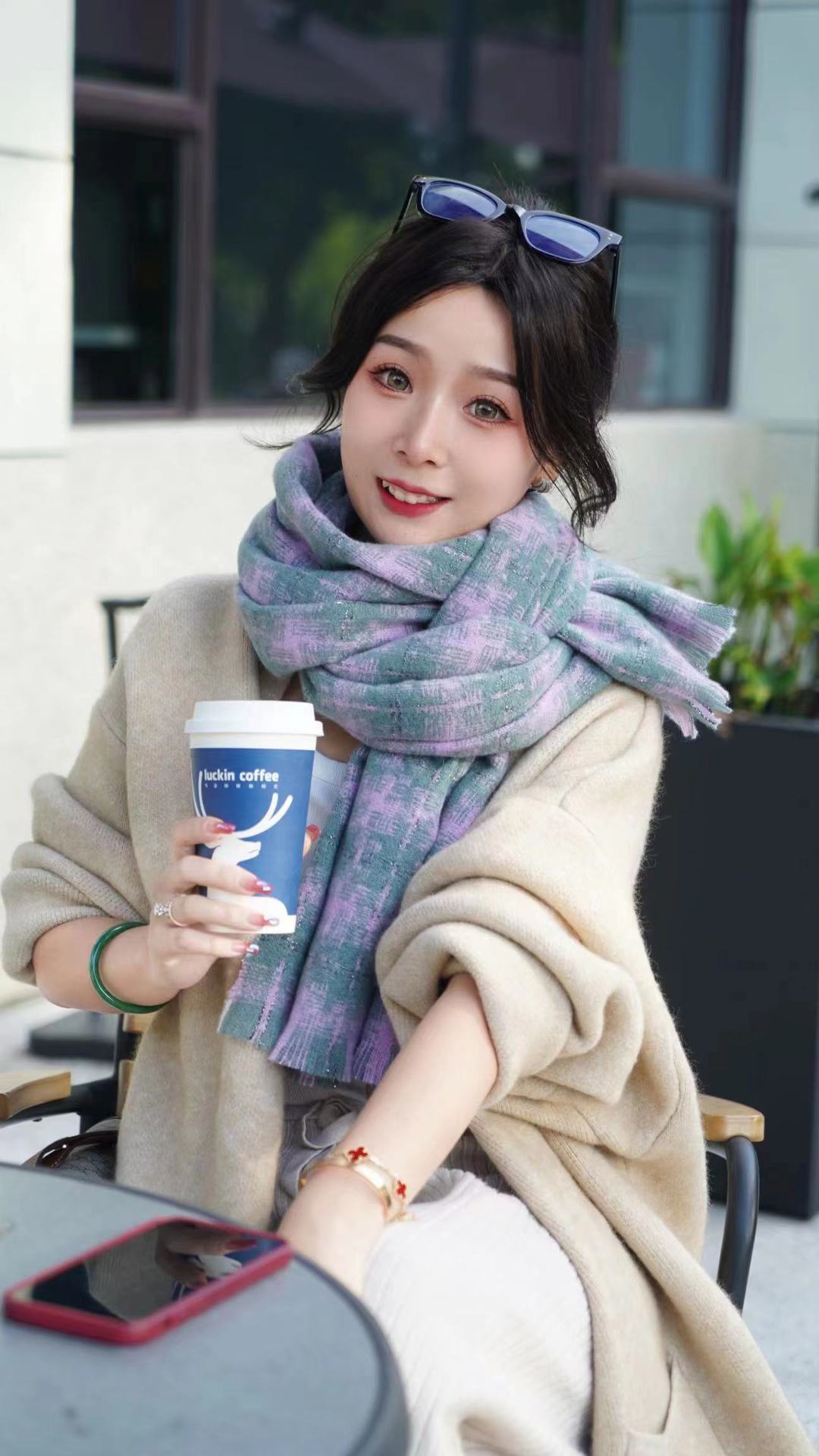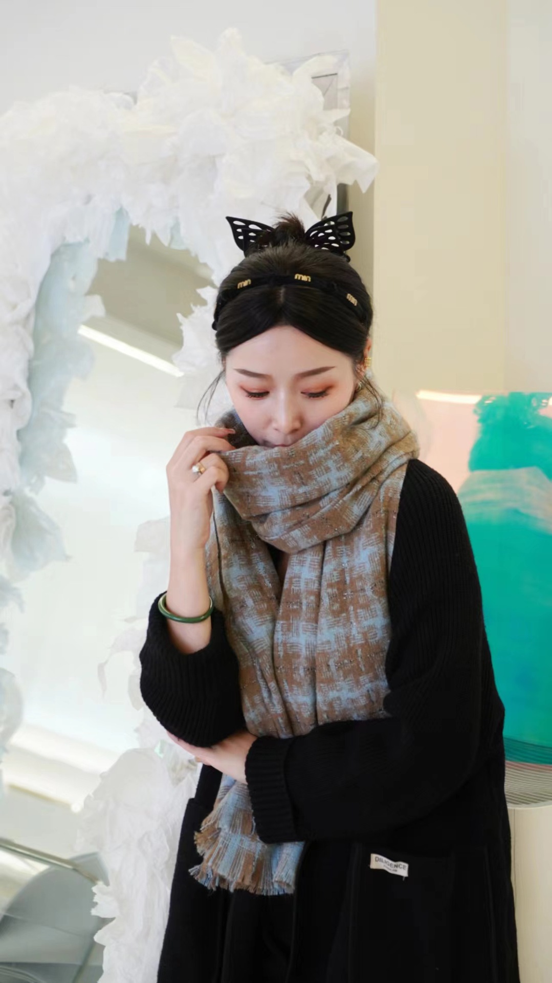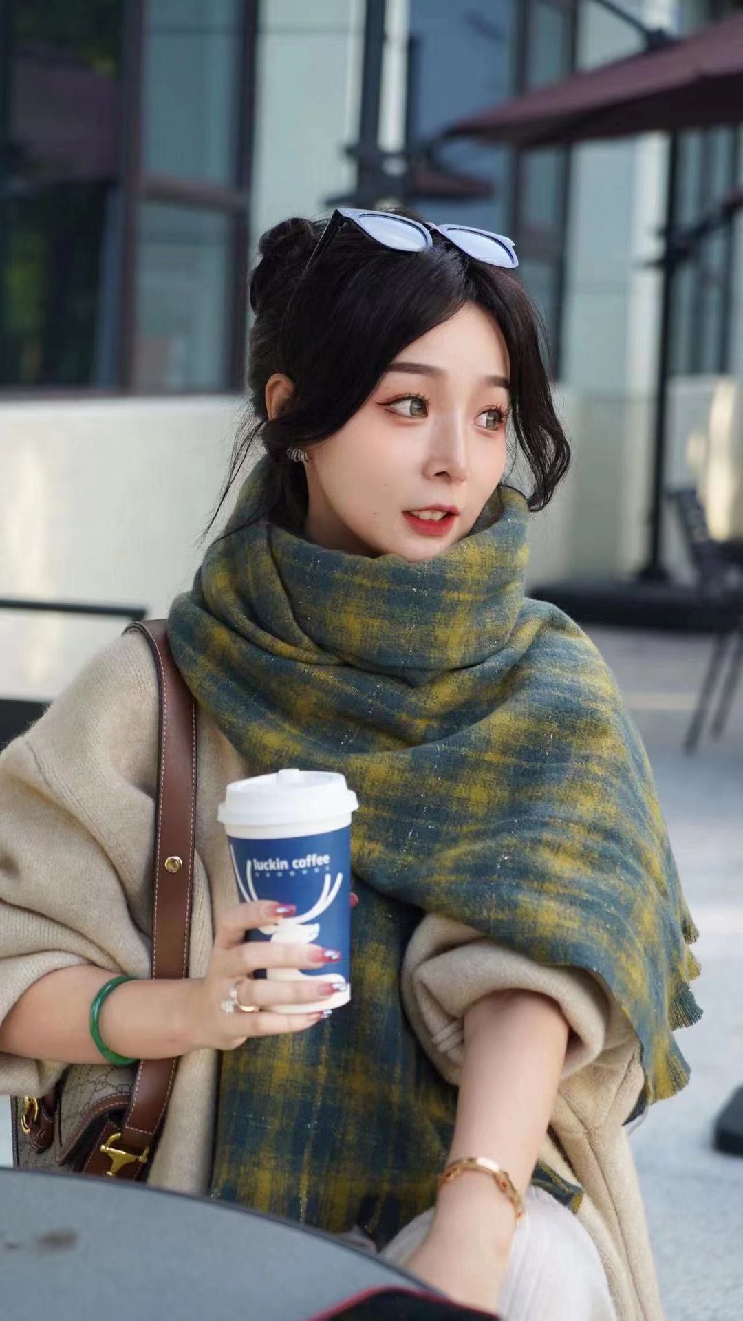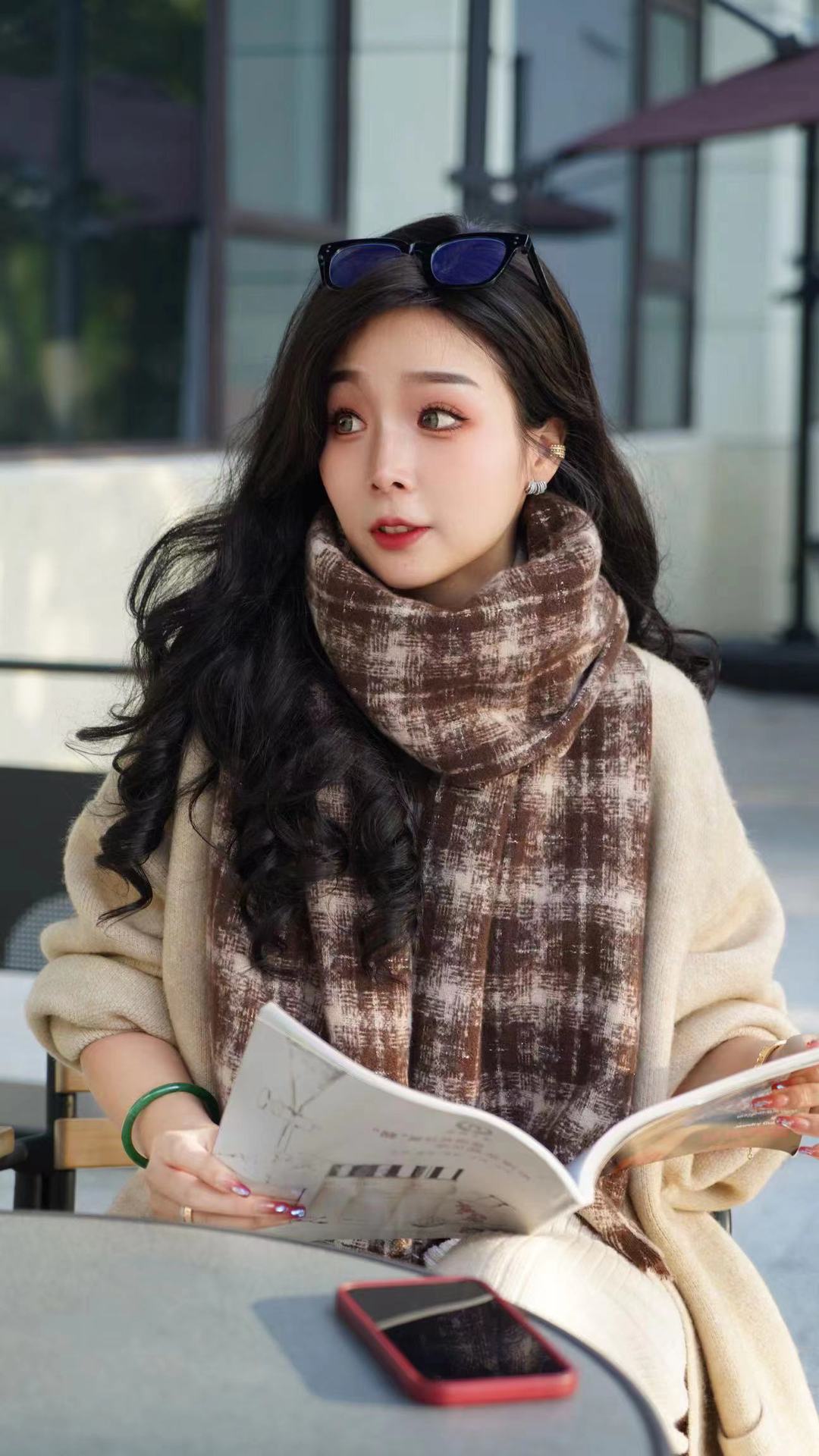 2023 가을 새로운 모조 캐시미어 루프 원사 실버 격자 무늬 한국 동대문 학생 두꺼운 따뜻한 패션 스카프스토어 가기