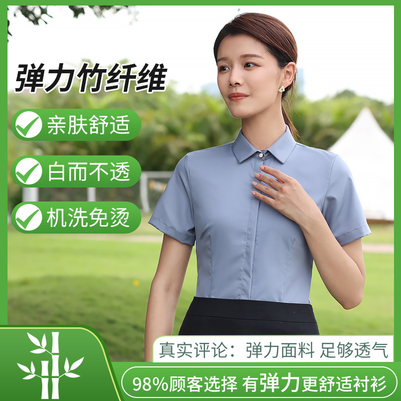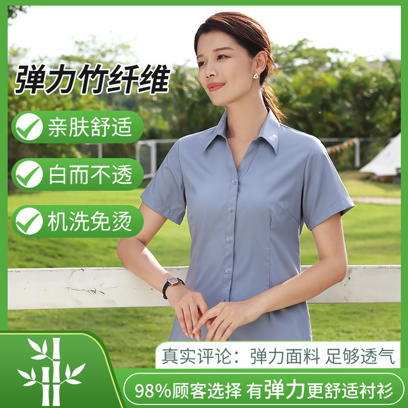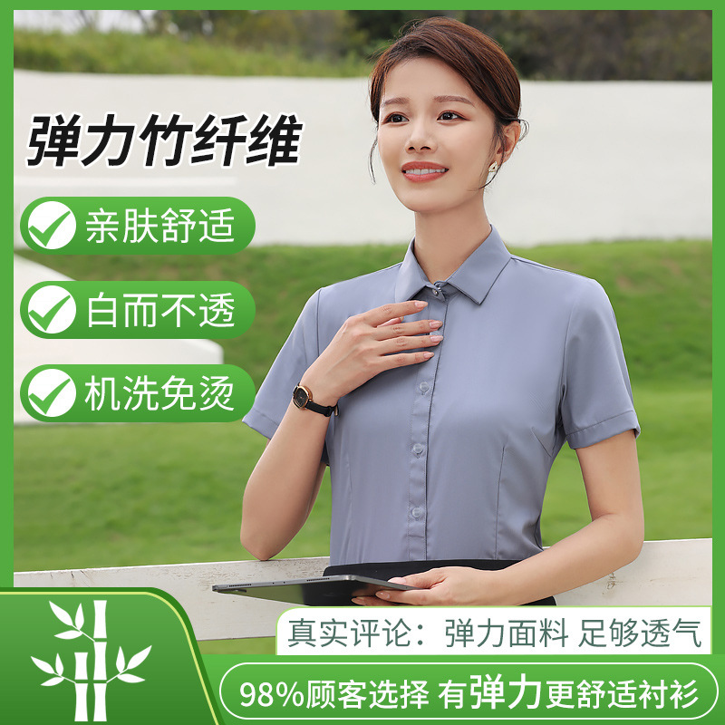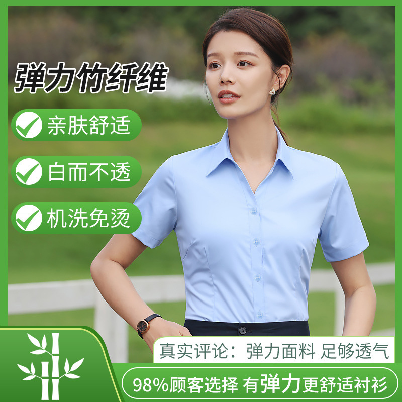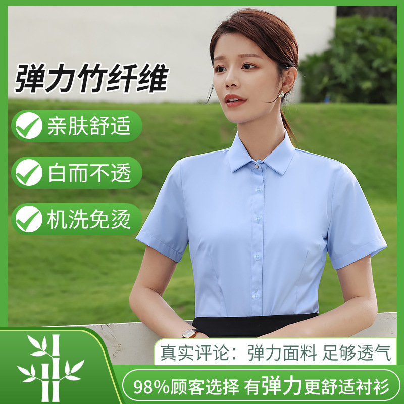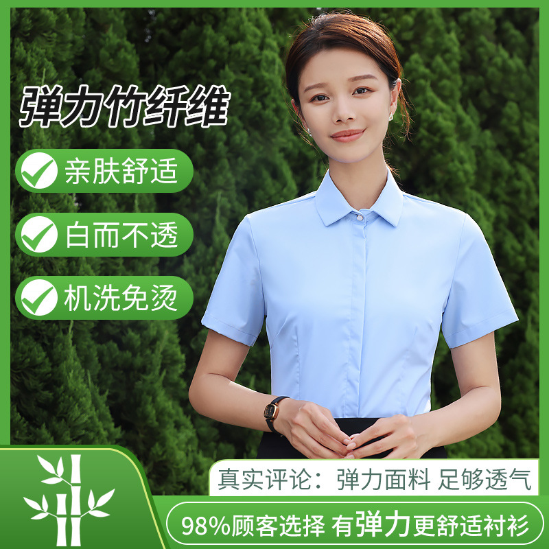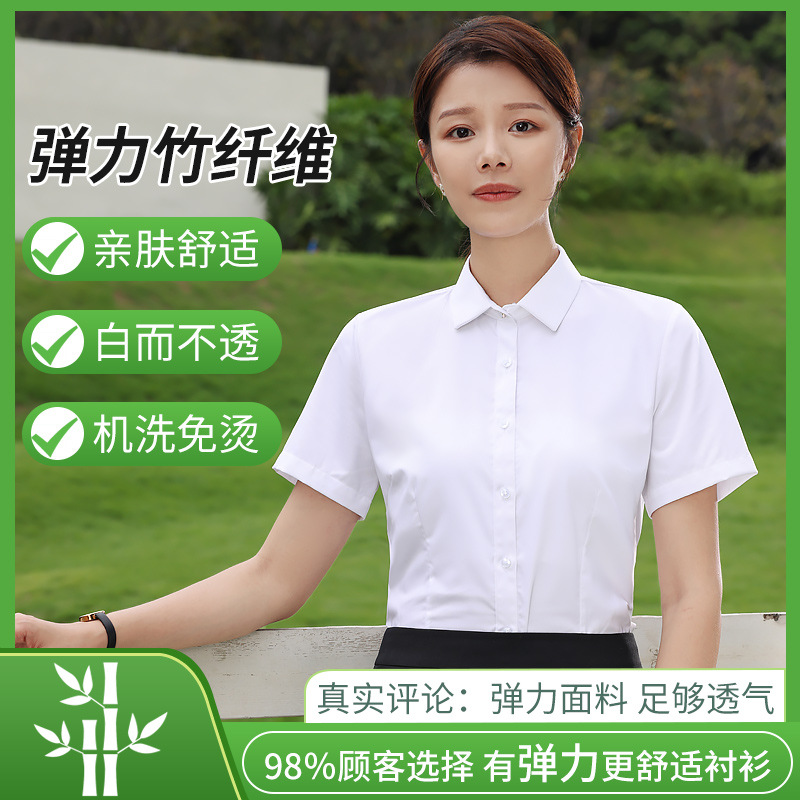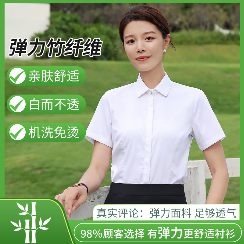 대나무 섬유 흰색 셔츠 여성용 긴팔 가을과 겨울 비즈니스 원피스 탄성 비 철 작업복 여름 반팔 셔츠스토어 가기