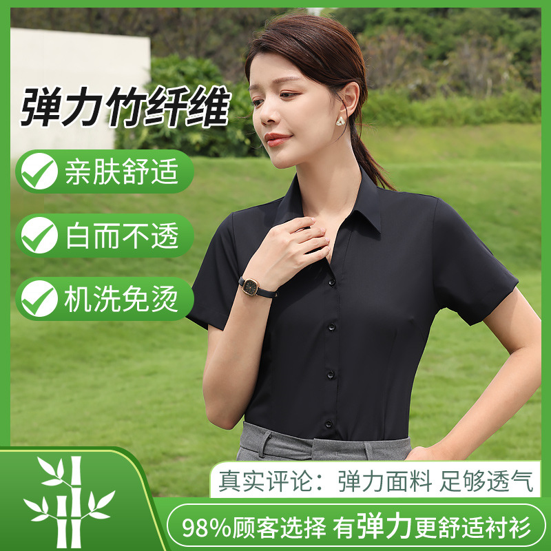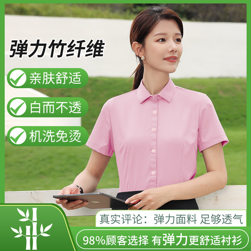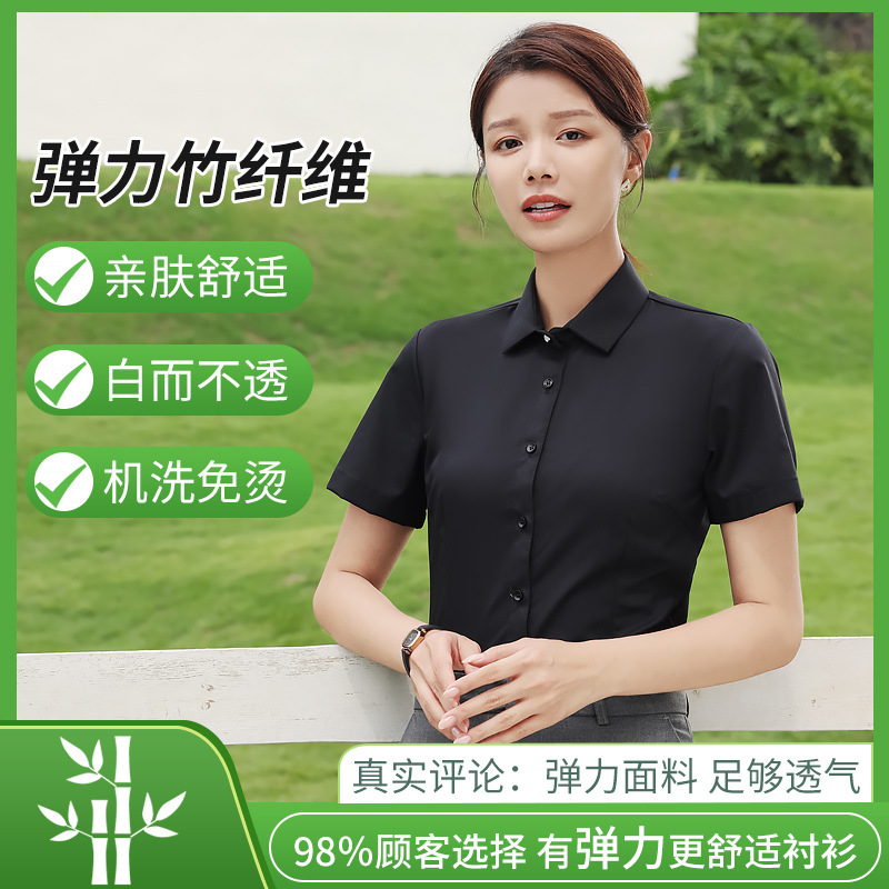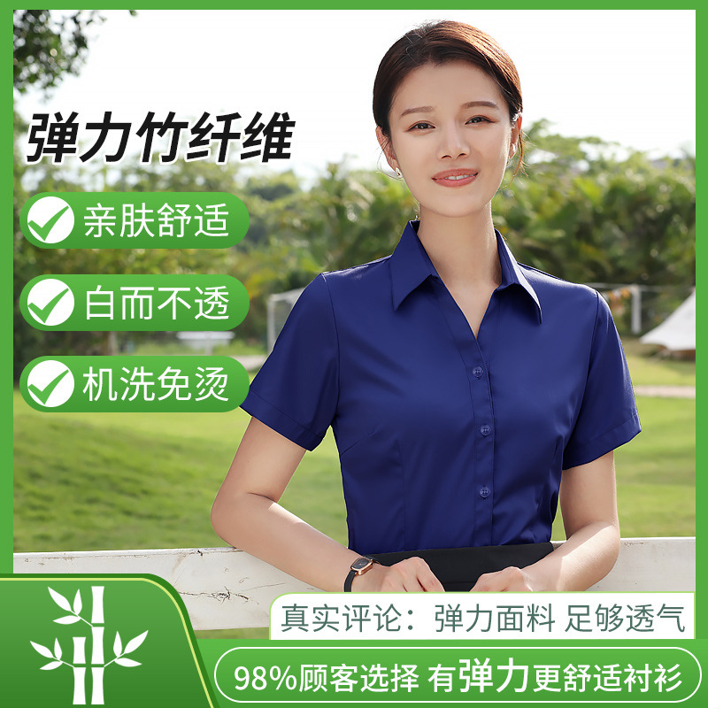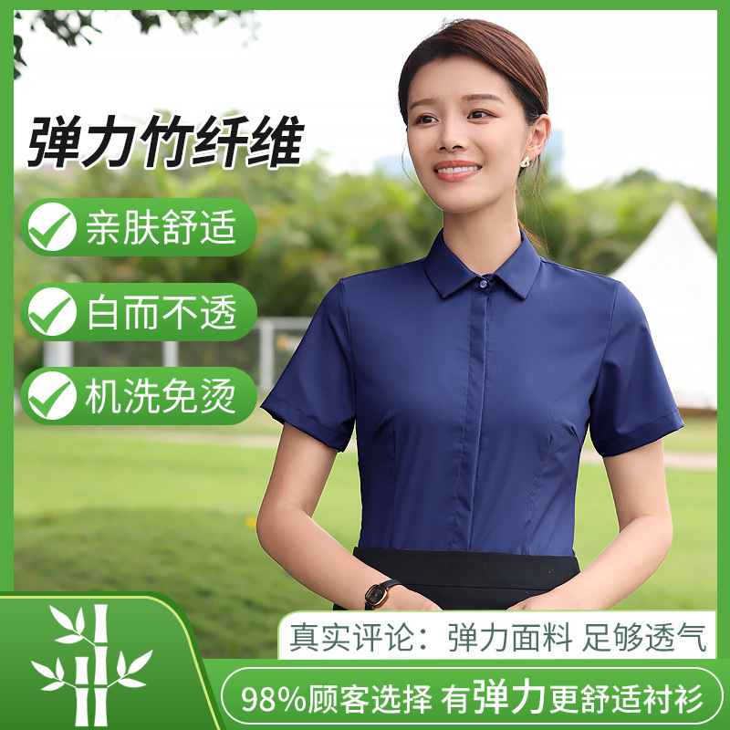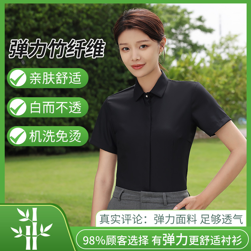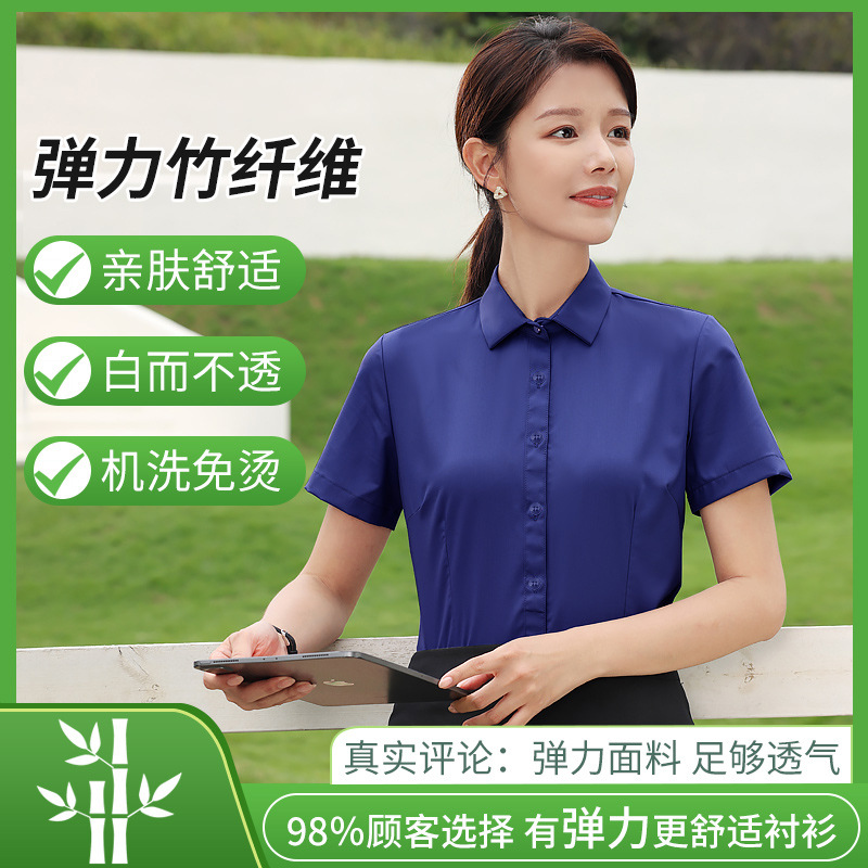 대나무 섬유 흰색 셔츠 여성용 긴팔 가을과 겨울 비즈니스 원피스 탄성 비 철 작업복 여름 반팔 셔츠스토어 가기