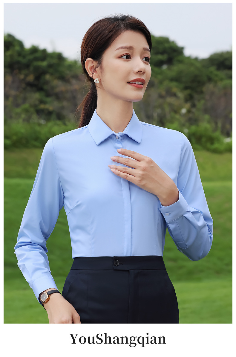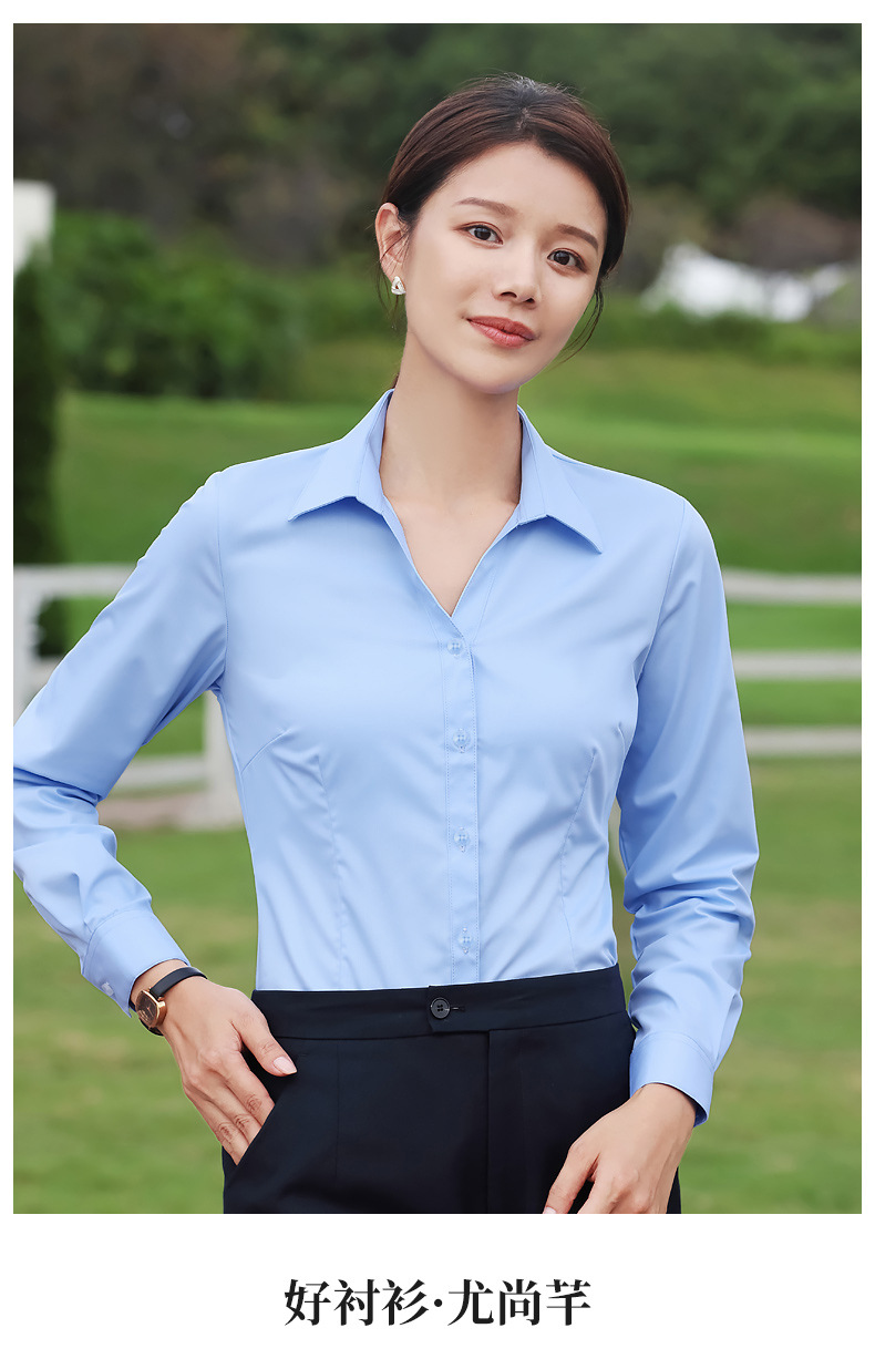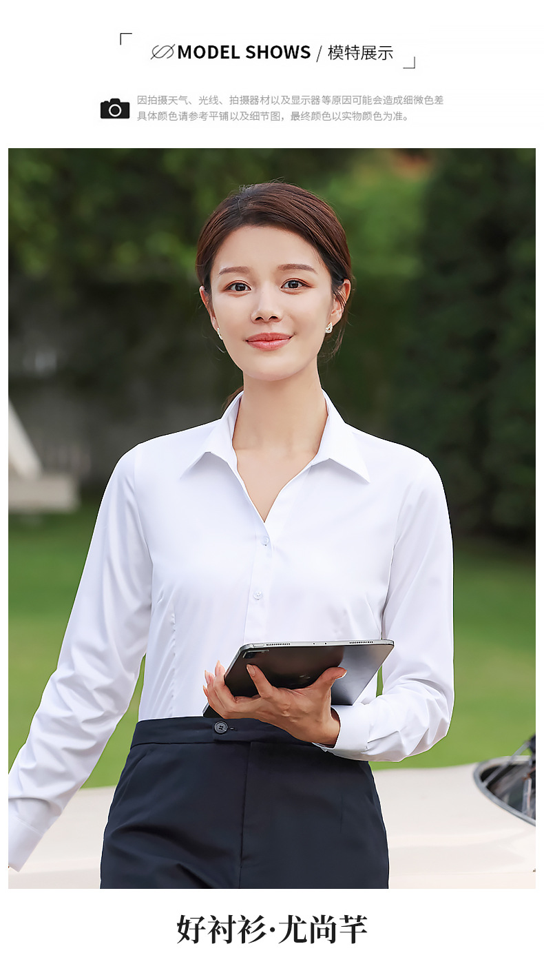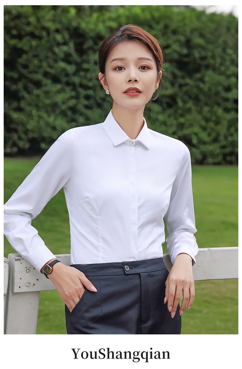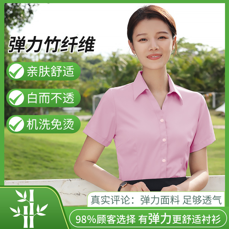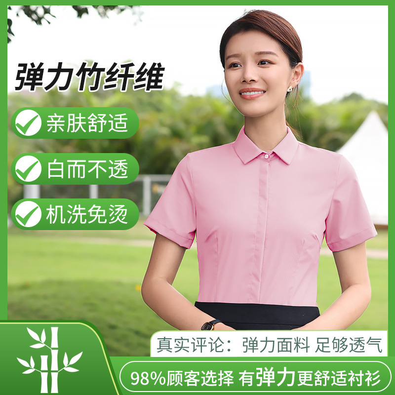 대나무 섬유 흰색 셔츠 여성용 긴팔 가을과 겨울 비즈니스 원피스 탄성 비 철 작업복 여름 반팔 셔츠스토어 가기