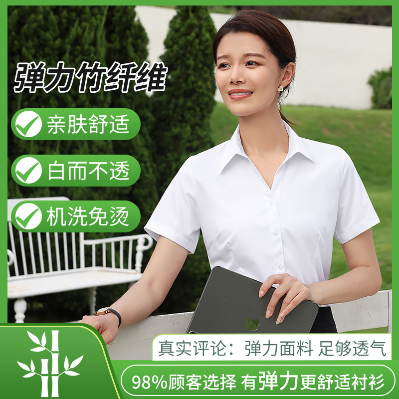 대나무 섬유 흰색 셔츠 여성용 긴팔 가을과 겨울 비즈니스 원피스 탄성 비 철 작업복 여름 반팔 셔츠